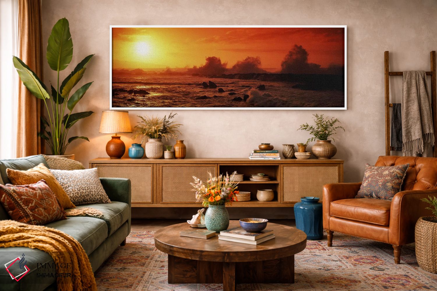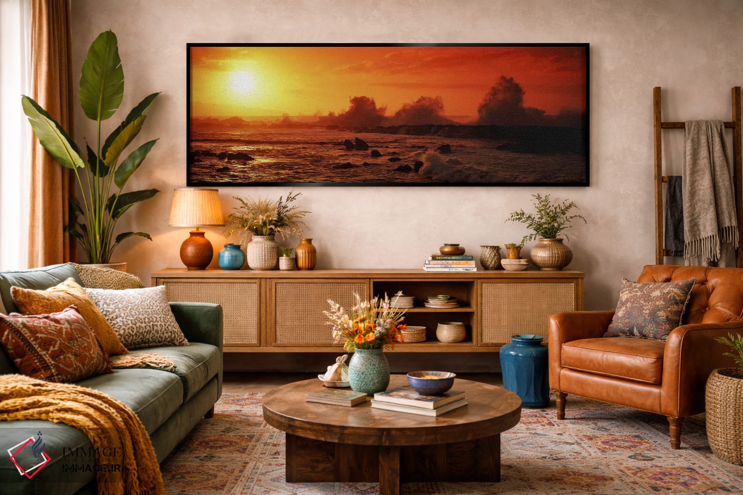 بوم گالری ایماژ نسخهی چیدماناتیوِ سطحبالا از یک اثر هنری است؛ روی کنواس بدون اسید با بافت ظریف و یکنواخت با چاپ هنریِ دقیق (Giclée) برای گذارهای نرمتر و وضوح بالاتر و رنگدانههای آرشیوی Epson UltraChrome HDR؛ حس نهایی نزدیکتر به ارائهی گالریوار است؛ نه صرفاً یک تصویر. برای پروژههای معماری داخلی یا محیطهای خاص، همکاری حرفهای را با ایماژ میتوان آغاز کرد.