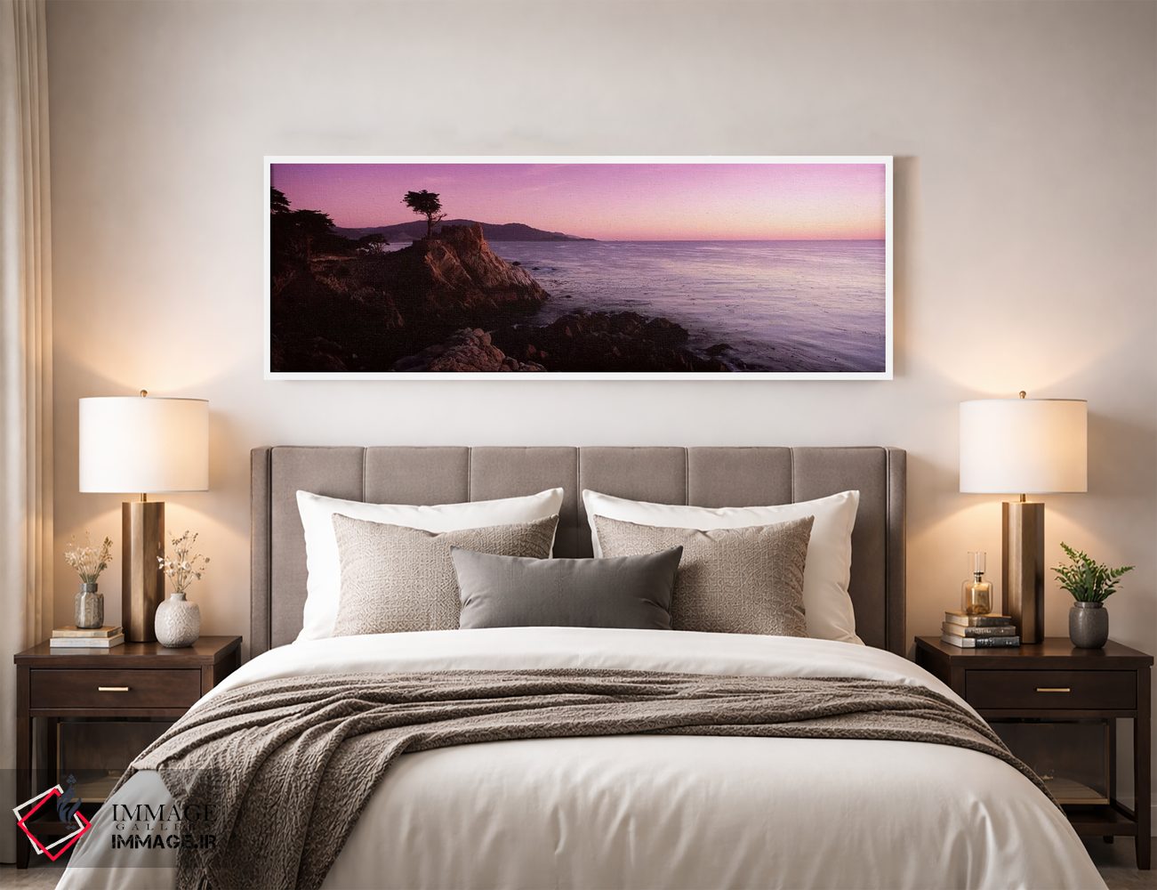 «Pebble Beach، Monterey County، California، USA، منظره ساحلی با درخت سرو تنها، پبل بیچ، شهرستان مونتری، کالیفرنیا، آمریکا» اثرِ «پانورامیک ایمجز (استودیو عکاسی عریض)» از آن انتخابهاییست که جلوهٔ اتاق را یک پله حرفهایتر میکند؛ برای دکورهای کلاسیک با چوب و پارچه انتخابی عالی است. اگر دنبال زیباییِ بیادعا هستید، این اثر درست مینشیند.