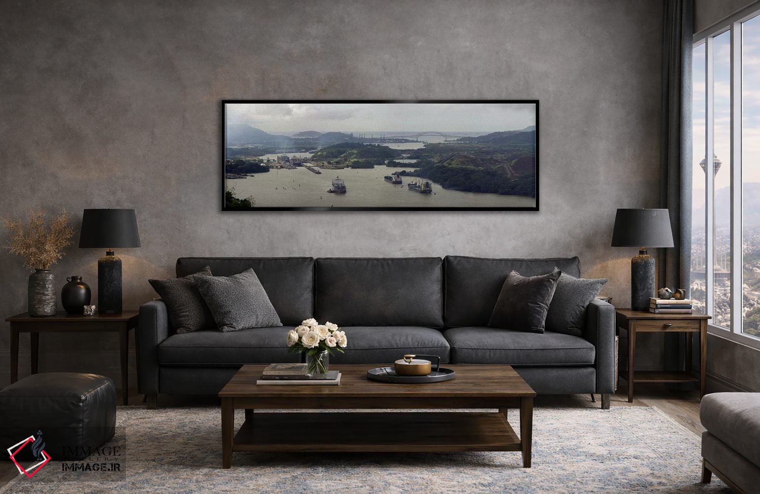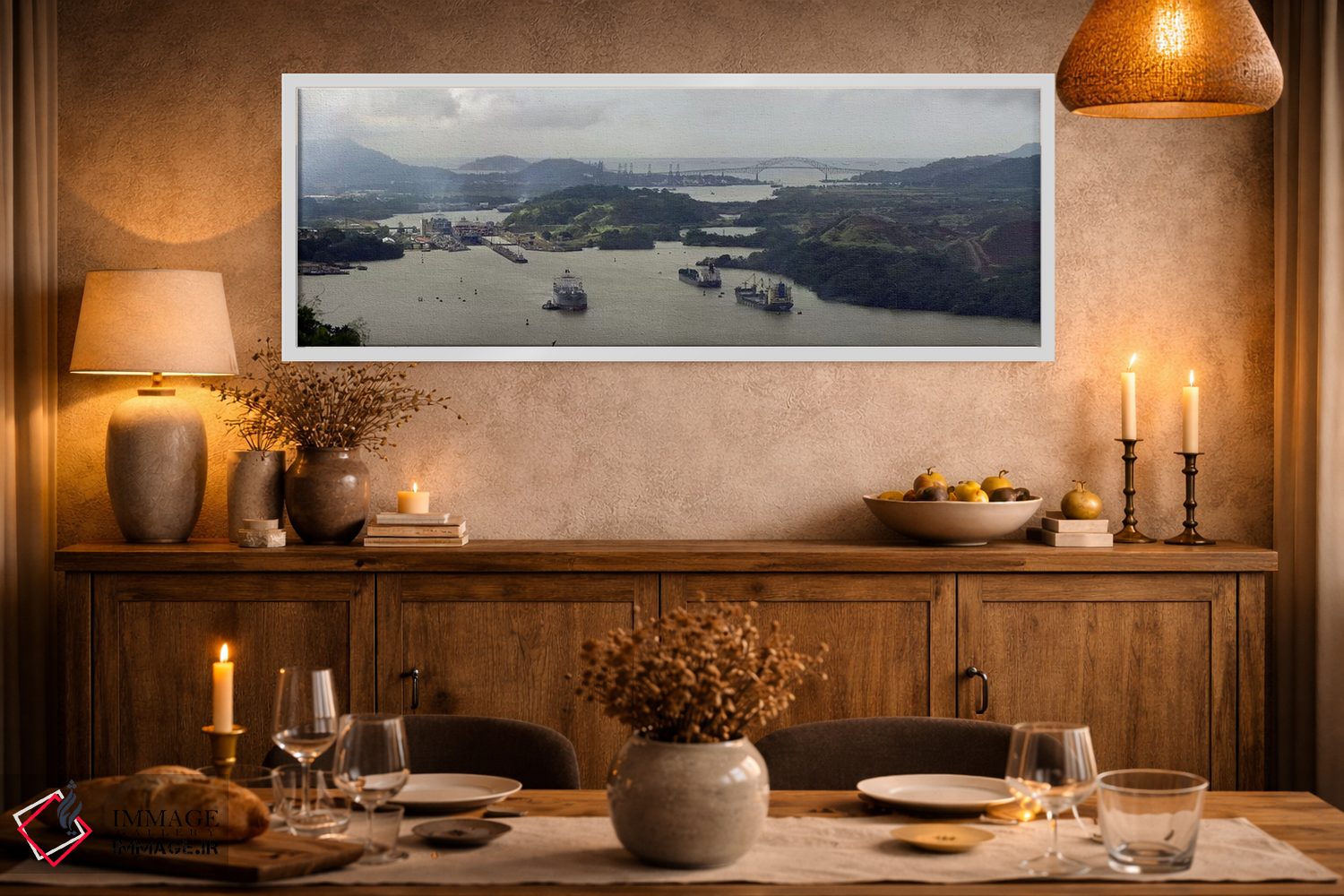 وقتی چیدمان را با دقت میچینید، «نمای هوایی از کانال پاناما با قفلهای میرافلورس و پل آمریکا» اثرِ «پانورامیک ایمجز (استودیو عکاسی عریض)» چیدمان را از حالت پراکنده خارج میکند؛ برای فضاهای کمنور که به «نقطهٔ روشن» نیاز دارند پیشنهاد میشود. اگر میخواهید یک اثر همیشه «بهروز» بماند، انتخاب خوبیست.
