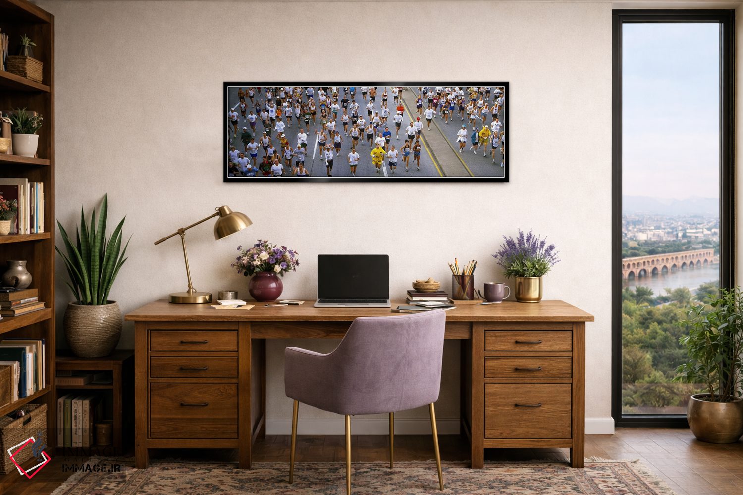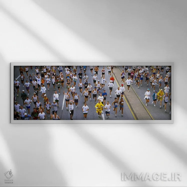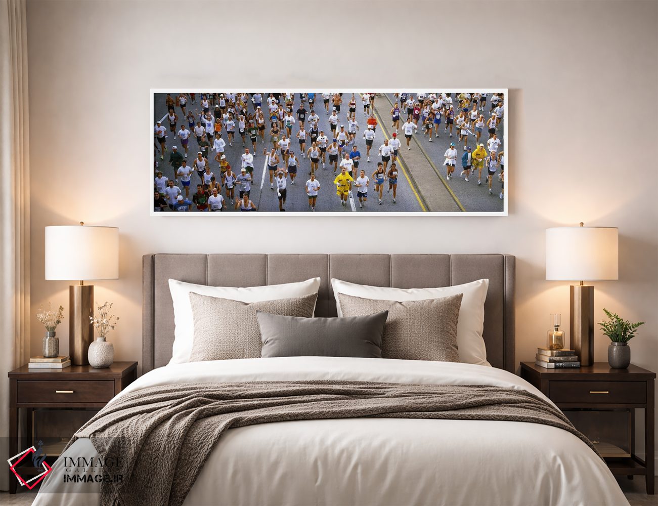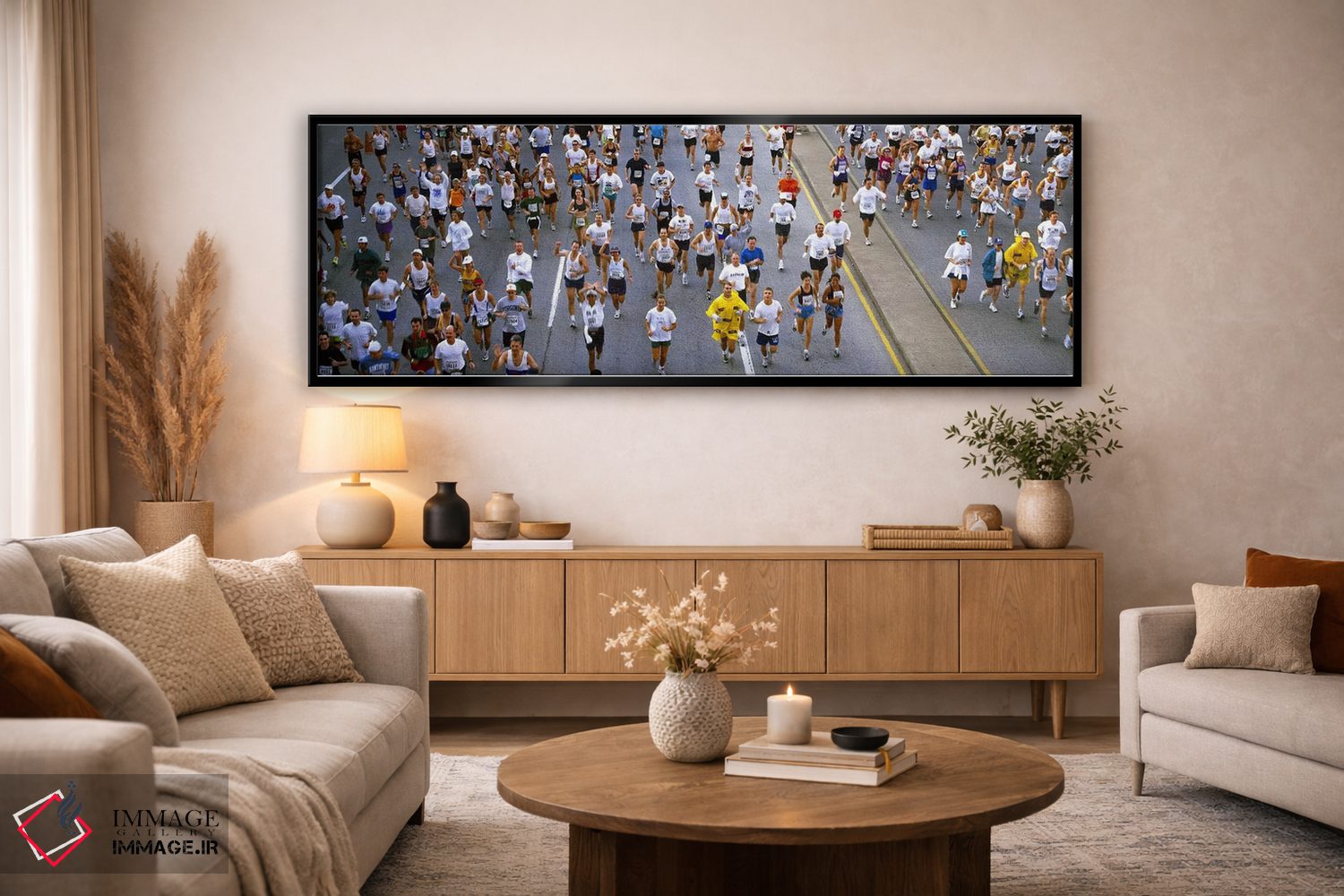 اگر میخواهید دیوار از «پسزمینه» بیرون بیاید، «Chicago، Illinois، USA، افراد در حال دویدن در ماراتن، ماراتن شیکاگو، ایلینوی، آمریکا» اثرِ «پانورامیک ایمجز (استودیو عکاسی عریض)» حس گالریوار را بیسروصدا وارد خانه میکند؛ برای راهروها و ورودیهای مینیمال پیشنهاد میشود. هم از دور چشمگیر است و هم از نزدیک پرداخت دارد.