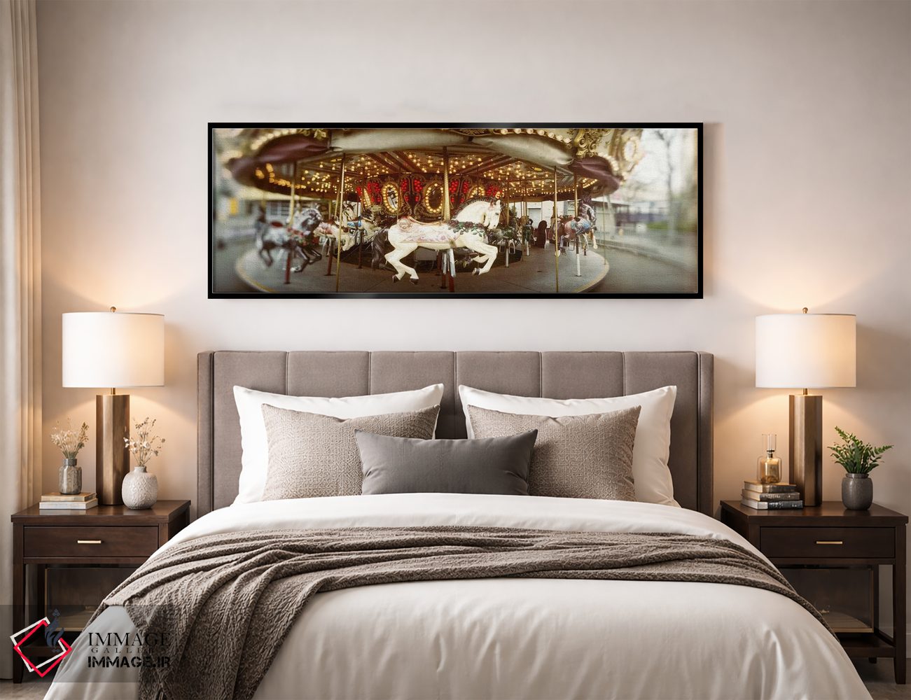 «Seattle Center، Queen Anne Hill، Seattle، Washington State، USA، اسبهای چرخ و فلک در پارک تفریحی، مرکز سیاتل، کوئین آن هیل، سیاتل، ایالت واشنگتن، آمریکا» اثرِ «پانورامیک ایمجز (استودیو عکاسی عریض)» بازیِ دقیقِ خط و هندسه است؛ یک زیباییِ دقیق و حرفهای بسازد؛ برای فضاهای اداری انتخابی خوشسلیقه است. اگر دنبال اثر «مرتب و معاصر» هستید، انتخاب دقیقیست.