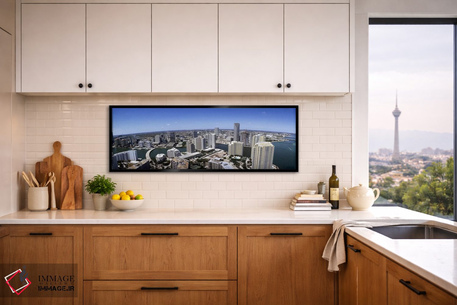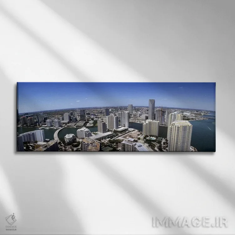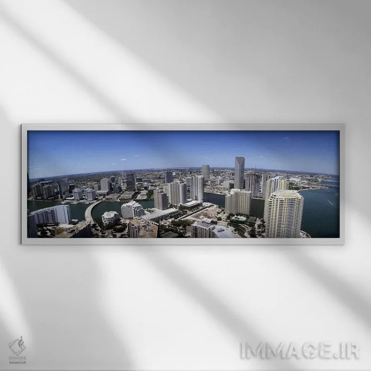 «Miami، Miami—Dade County، Florida، USA 2008 #2، نمای هوایی از شهر، میامی، شهرستان میامیدید، فلوریدا، آمریکا (۲۰۰۸، شماره ۲)» اثرِ «پانورامیک ایمجز (استودیو عکاسی عریض)» از آن انتخابهاییست که ریتم فضا را منظم میکند؛ برای اتاق کار و گوشهٔ مطالعه انتخابی عالی است. در کنار نورپردازی نقطهای، جلوهاش حرفهایتر میشود.