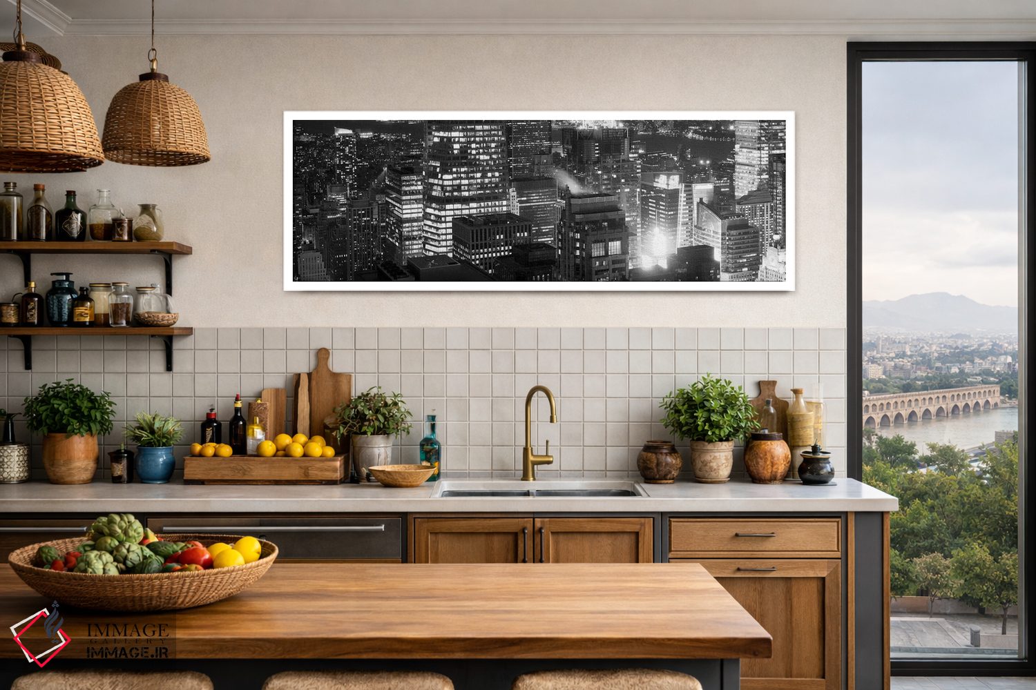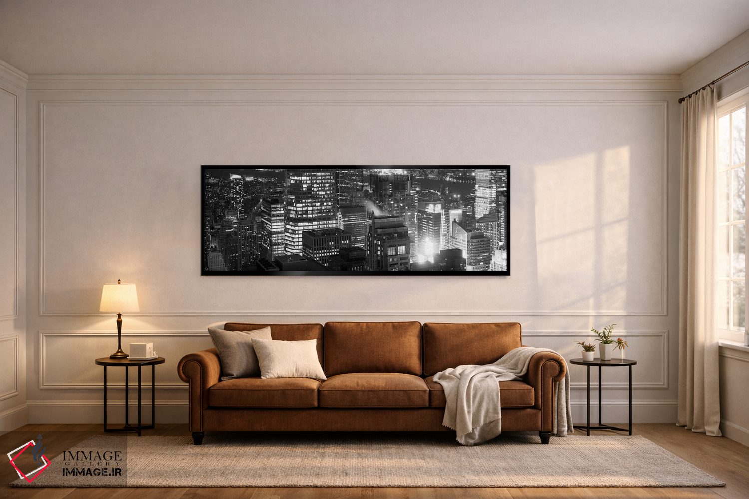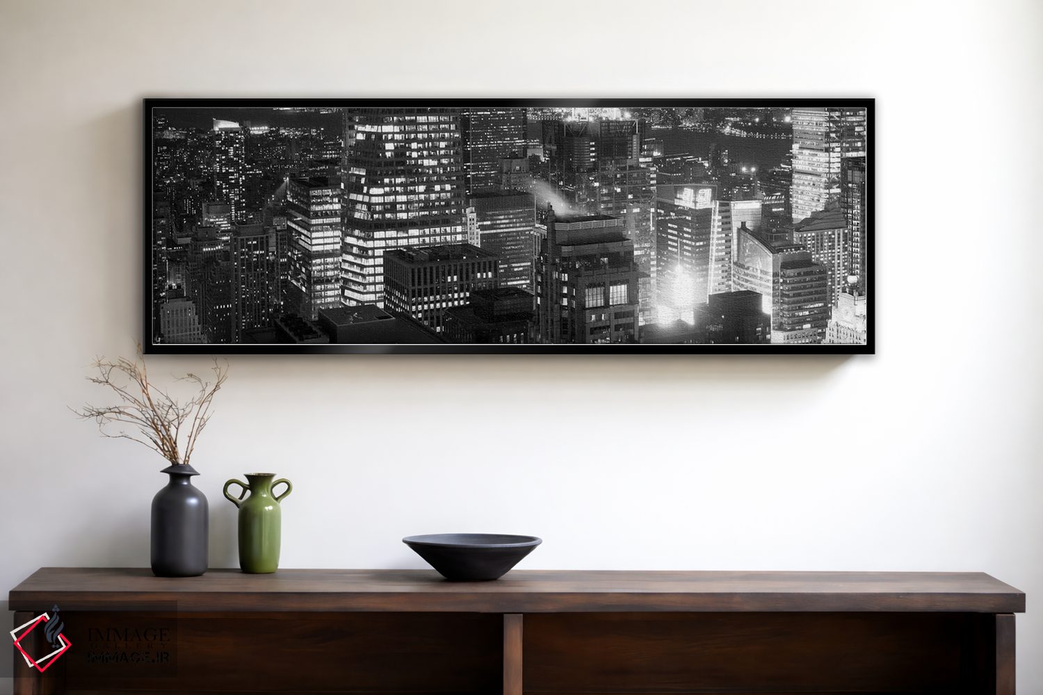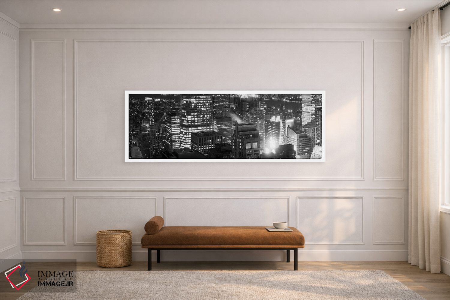 این اثرِ «پانورامیک ایمجز (استودیو عکاسی عریض)» با لحن سیاهوسفید، فضا را شیک و مرتب نشان میدهد؛ مناسبِ پذیراییهای مدرن و دفتر کار.