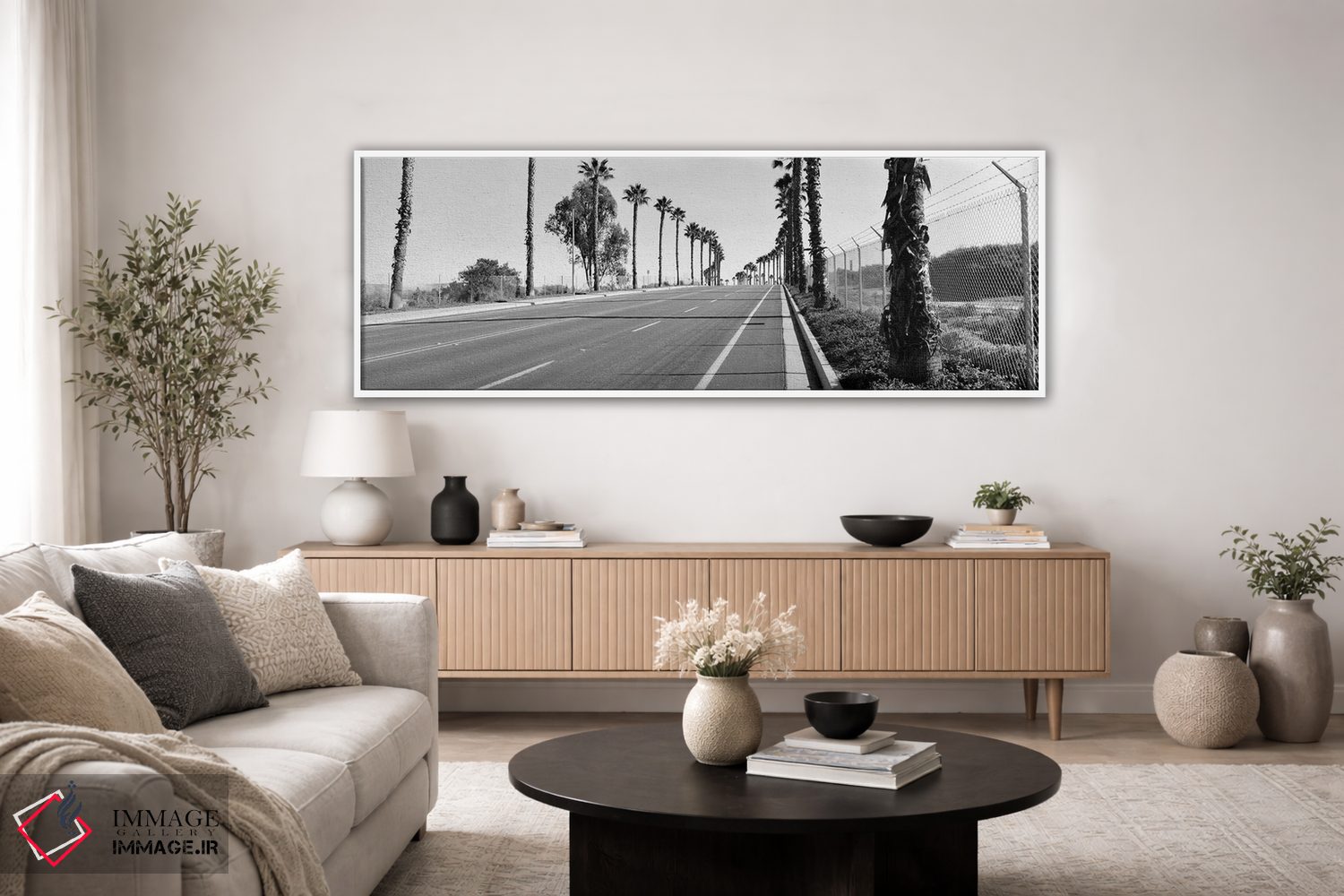 براساس پالت خنثی اثر، قاب مشکی مات (فریم باریک) پیشنهاد اول است و سفید مات (فریم باریک) مکمل. برای سفارشهای پروژهای با ابعاد و قابهای اختصاصی با ایماژ در تماس باشید.
