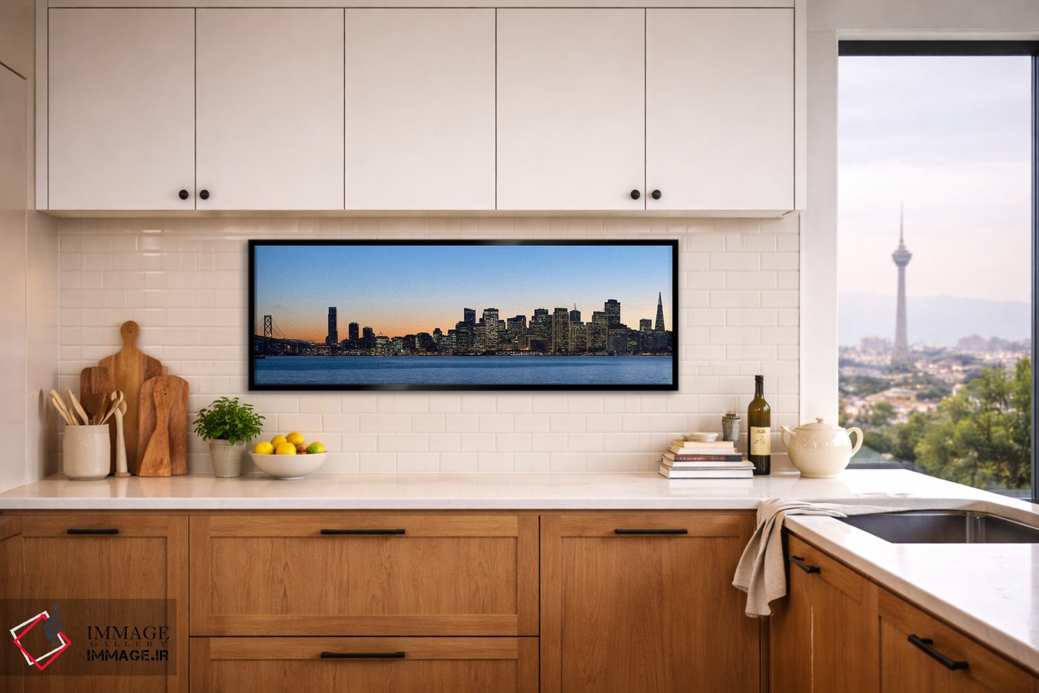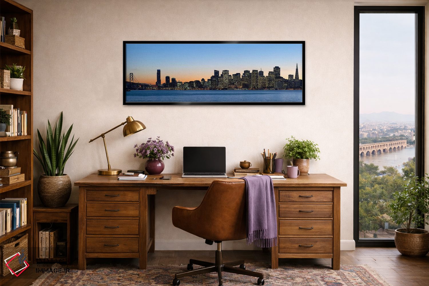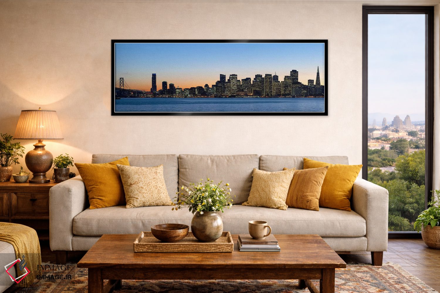 «Bay Bridge، San Francisco، California، USA 2010، خط افق شهر و یک پل در غروب، پل بی، سانفرانسیسکو، کالیفرنیا، ایالات متحده آمریکا ۲۰۱۰» اثرِ «پانورامیک ایمجز (استودیو عکاسی عریض)» میتواند جلوهٔ اتاق را یک پله حرفهایتر کند؛ برای دکورهایی که بافت و جزئیات در آن مهم است پیشنهاد میشود. اگر دنبال زیباییِ بیادعا هستید، این اثر درست مینشیند.