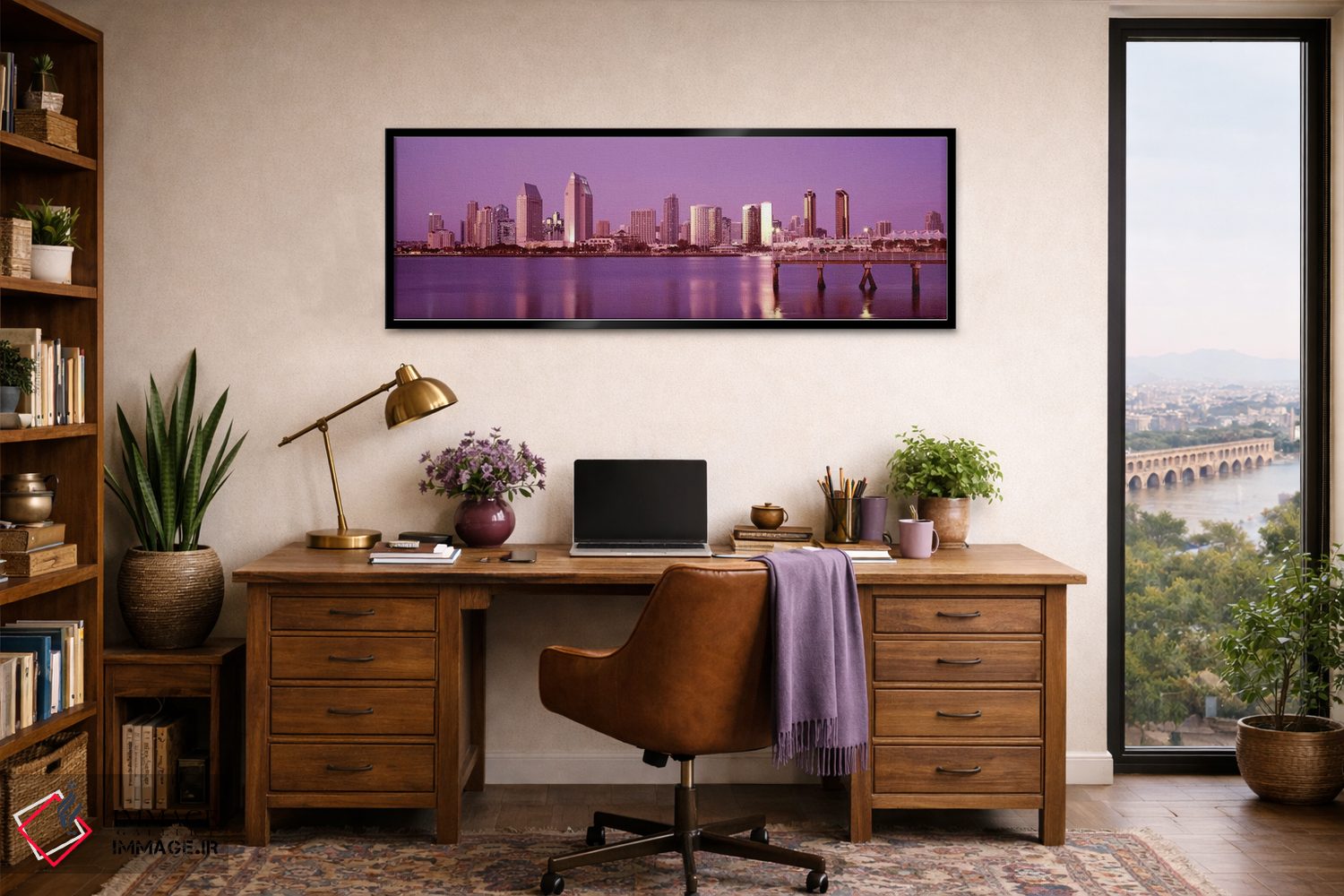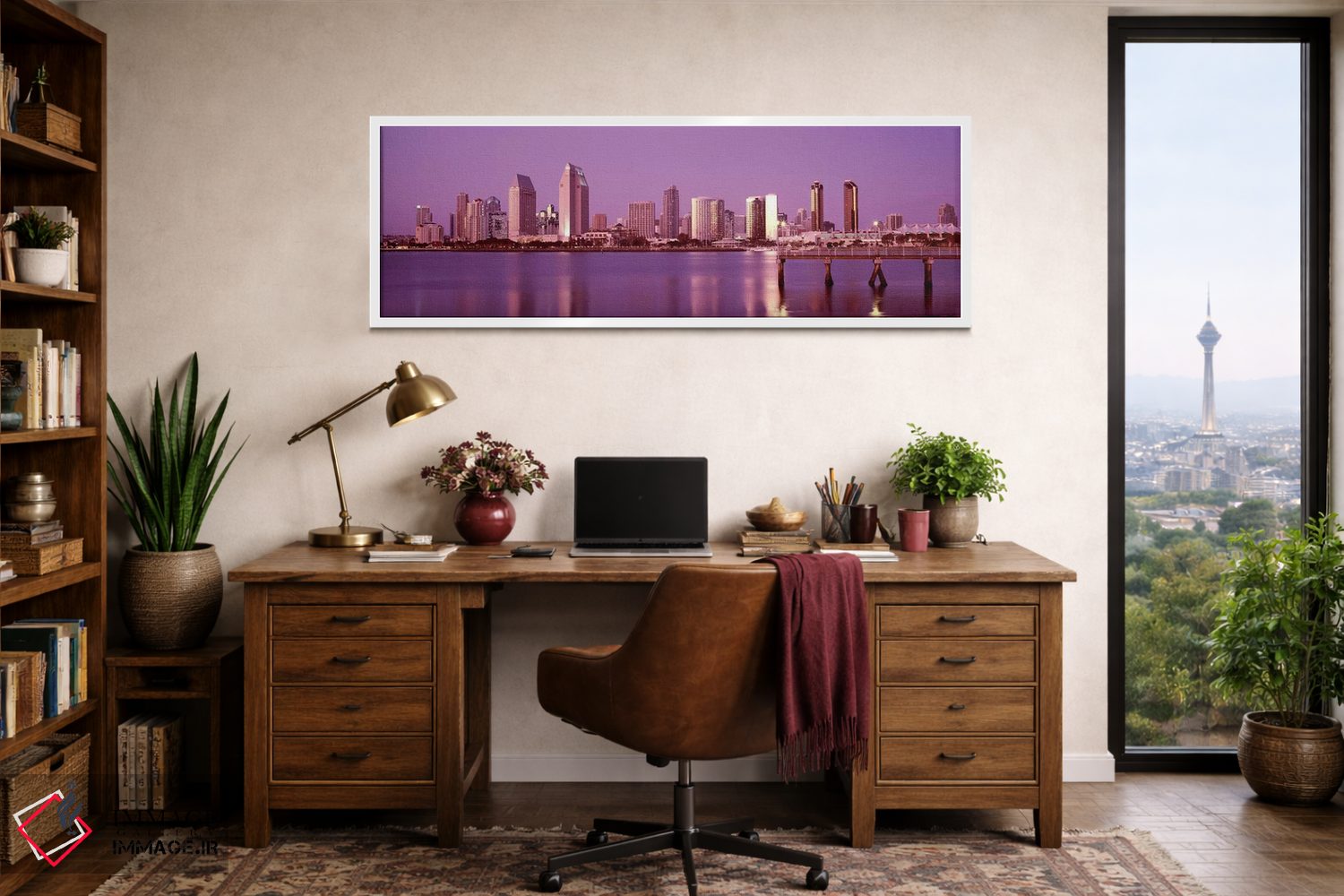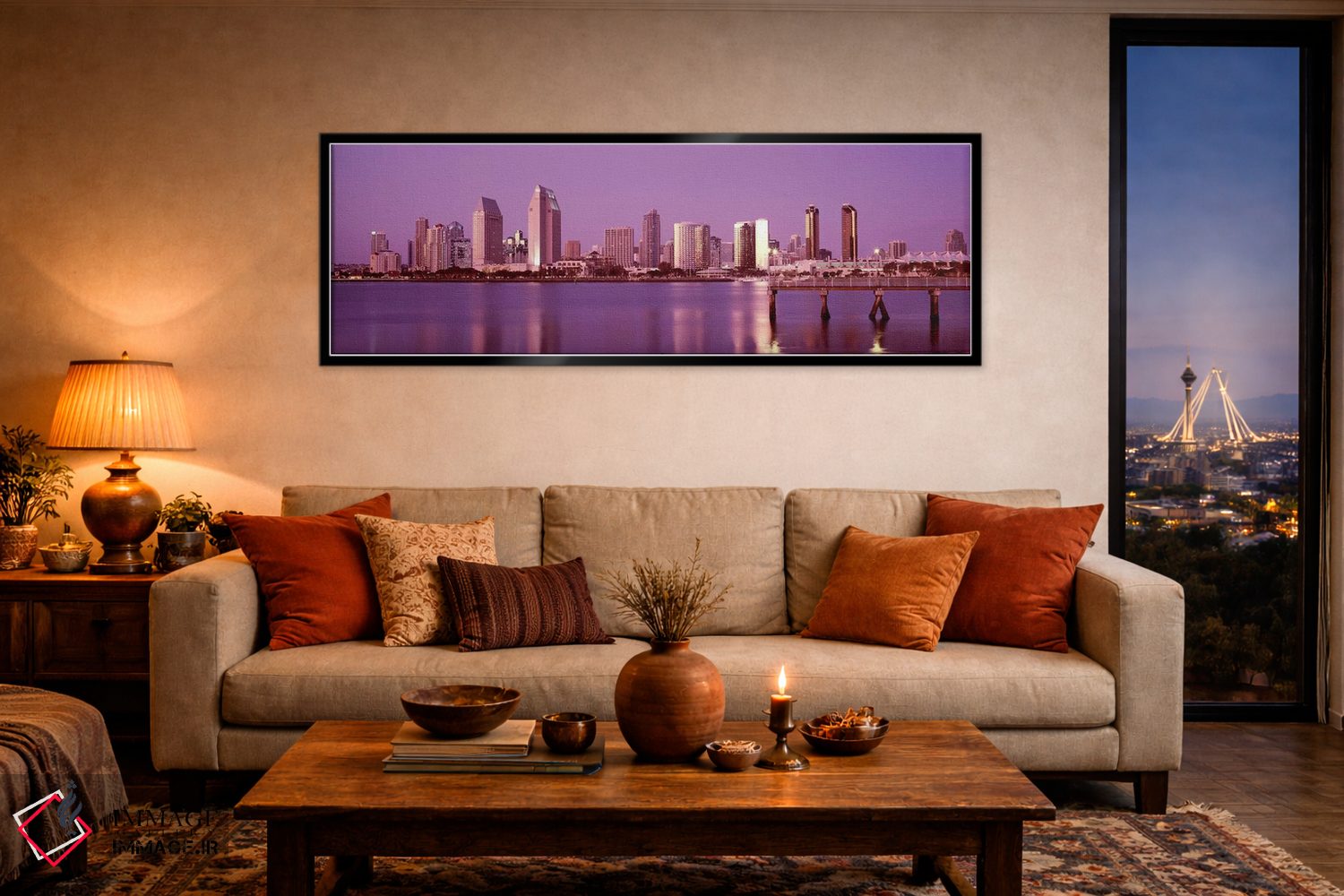 در این اثر، «San Diego، California، USA 2010 #6، ساختمانها در کنار آب، سن دیگو، کالیفرنیا، آمریکا ۲۰۱۰ شماره ۶» اثرِ «پانورامیک ایمجز (استودیو عکاسی عریض)» در کنار مبلمان، خوشنشین و هماهنگ مینشیند؛ برای اتاق خوابهای آرام و روشن پیشنهاد میشود. حضورش روی دیوار «مرتب» است؛ نه پر سر و صدا، نه بیاثر.