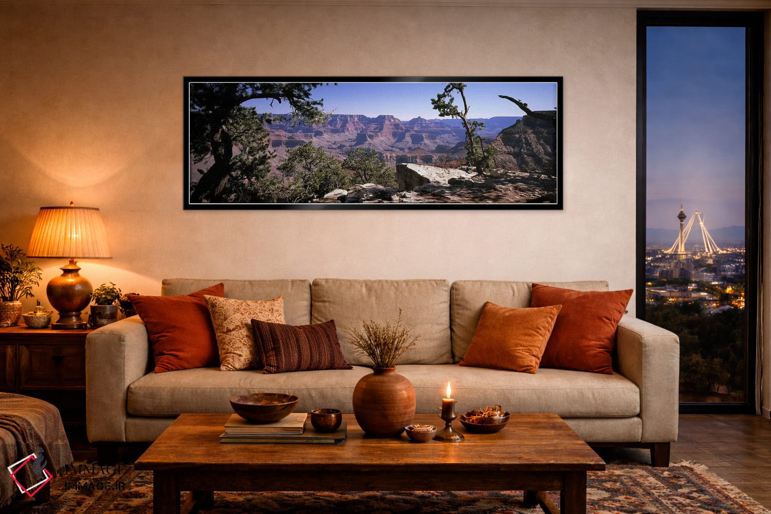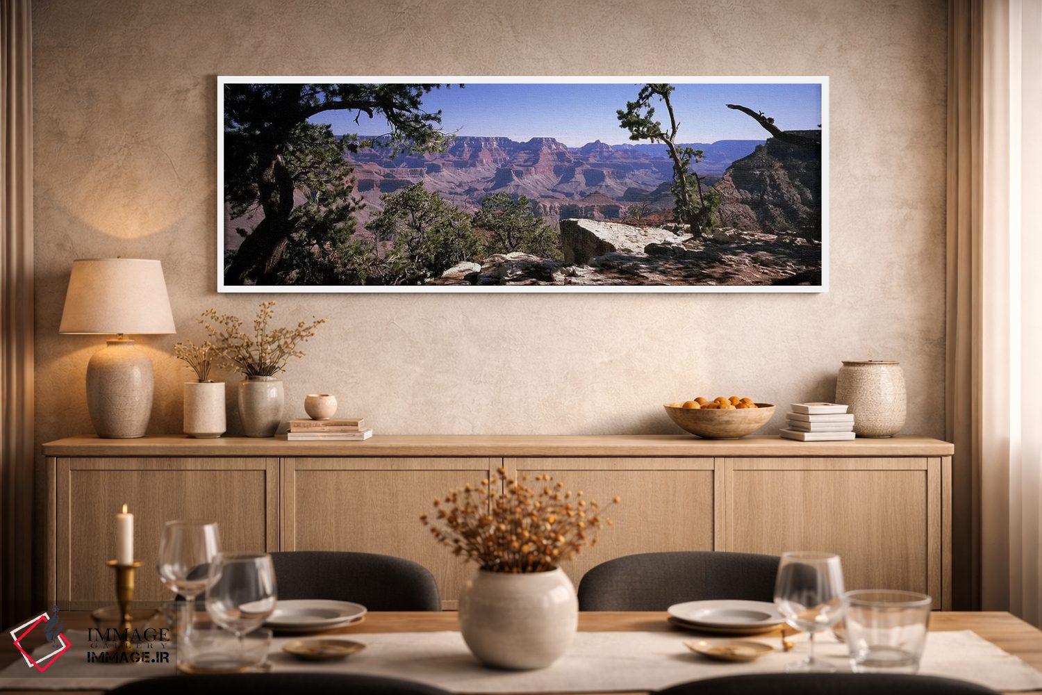 در این اثر، «Grand Canyon National Park، Arizona، USA، نمای لبه جنوبی از متِر پوینت، پارک ملی گرند کنیون، آریزونا، آمریکا» اثرِ «پانورامیک ایمجز (استودیو عکاسی عریض)» یک «نقطهٔ مکث» خوشسلیقه میسازد؛ برای فضاهایی با نور طبیعی پیشنهاد میشود. در کنار گیاهان آپارتمانی هم جلوهٔ لطیفی پیدا میکند.