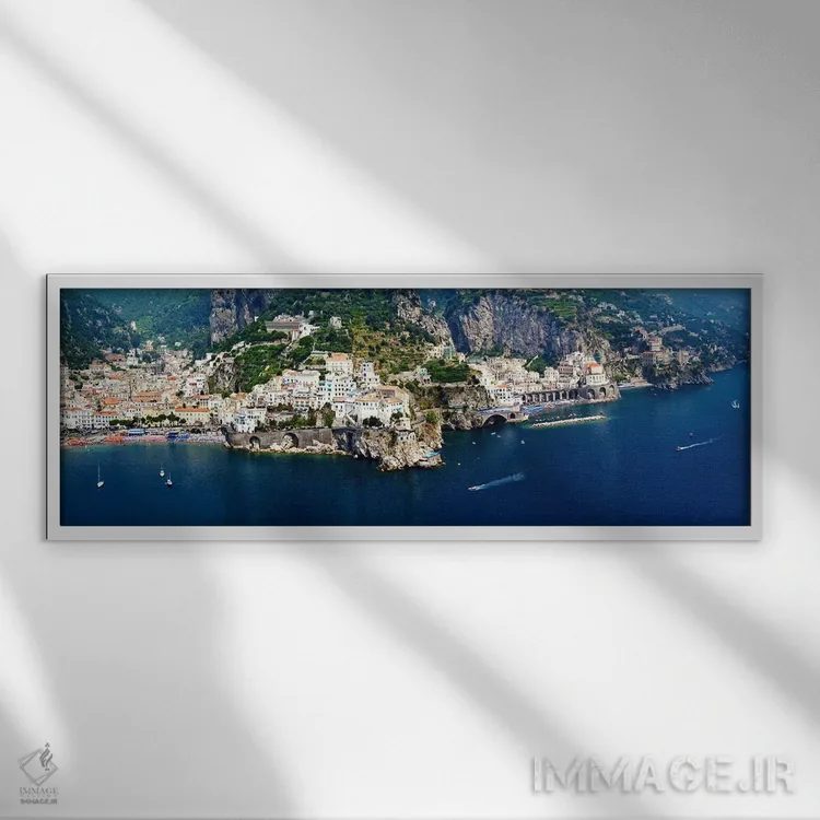 تابلو دکوراتیو Amalfi Coast, Salerno, Campania, Italy,نمای هوایی، ساحل… اثر پانورامیک ایمجز - نمای قاب‌دار سفید