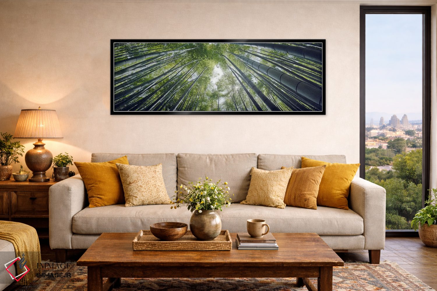 این اثر با عنوان «Hokokuji Temple، Kamakura، Kanagawa Prefecture، Kanto Region، Honshu، Japan، نمای پایین از درختان بامبو، معبد هوکاکوجی، کاماکورا، استان کاناگاوا، منطقه کانتو، هونشو، ژاپن» اثرِ «پانورامیک ایمجز (استودیو عکاسی عریض)» فضا را نرمتر و مهماننوازتر میکند؛ برای کنار میز آرایش یا کنسول انتخابی خوشسلیقه است. فضا را شلوغ نمیکند؛ فقط لطیفترش میکند.