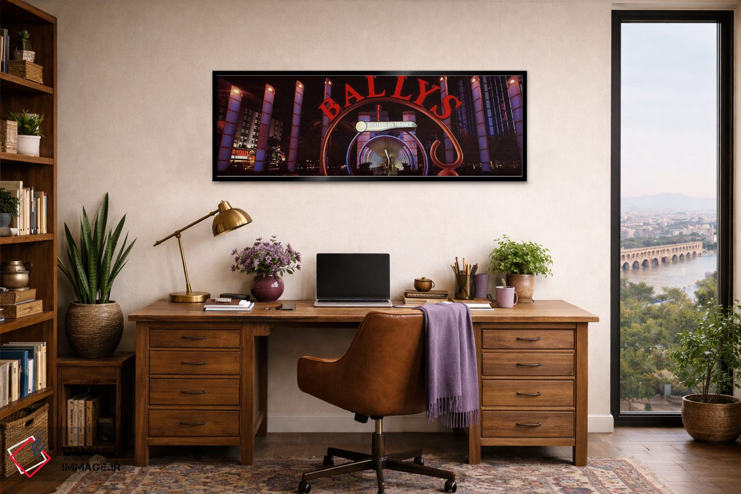 اگر دیوارِ راهرو یا گوشهی مطالعه نیاز به یک قاب خوشانرژی دارد، «Bally's Las Vegas، Monorail Station، The Strip، Las Vegas، Nevada، USA، تابلوی نئونی هتل، بلیز لاسوگاس، ایستگاه مونوریل، استریپ، لاسوگاس، نوادا، ایالات متحده آمریکا» اثرِ «پانورامیک ایمجز (استودیو عکاسی عریض)» با تم این اثر گزینهی مناسبی است.