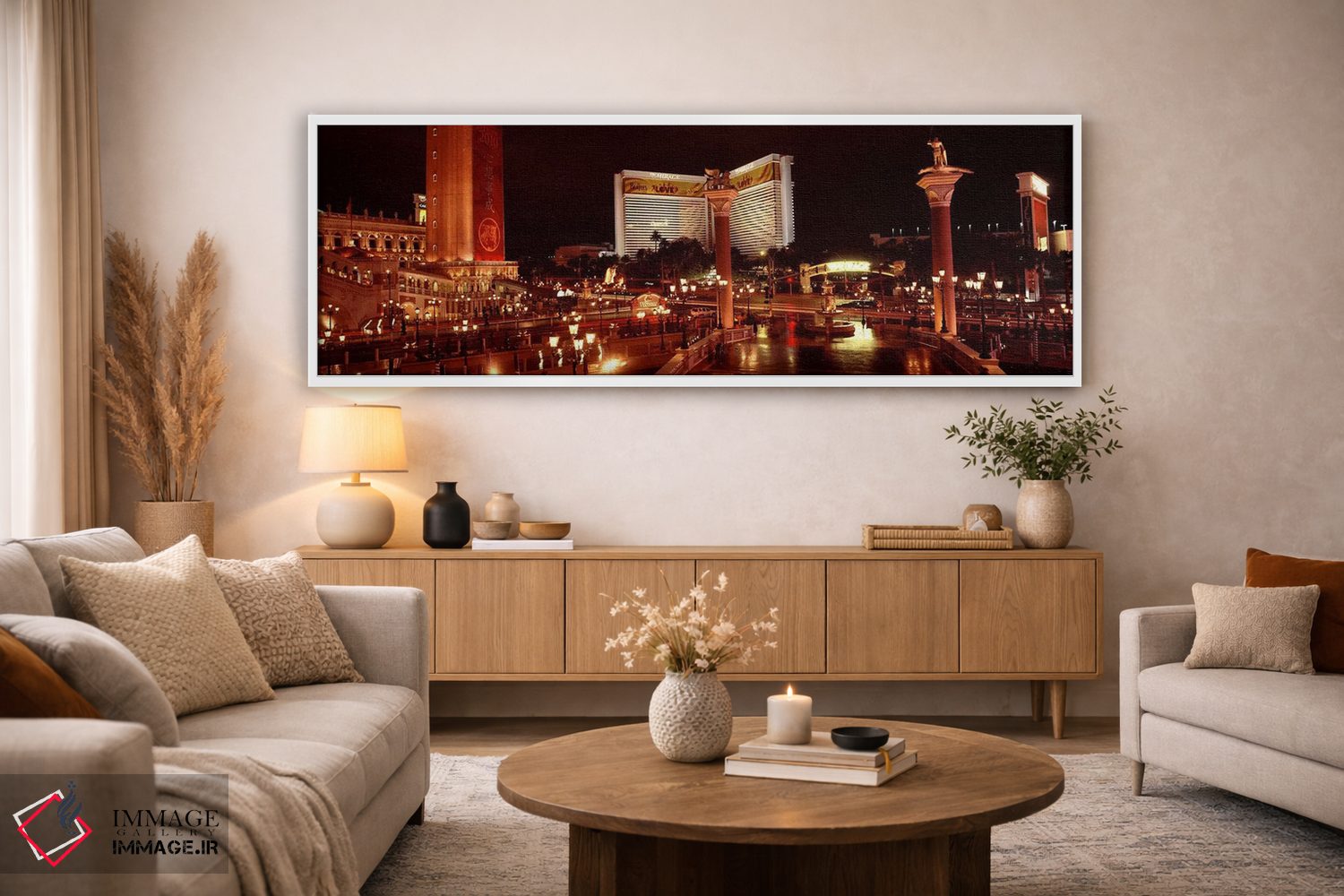 گاهی یک اثر کافیست تا فضا جمعوجور شود؛ «The Mirage، The Strip، Las Vegas، Nevada، USA، هتل روشن در شب، میرَج، استریپ، لاسوگاس، نوادا، ایالات متحده آمریکا» اثرِ «پانورامیک ایمجز (استودیو عکاسی عریض)» جلوهٔ رنگها را طبیعیتر و متعادلتر نشان میدهد؛ برای دکورهایی که بافت و جزئیات در آن مهم است پیشنهاد میشود. برای هدیه دادن هم انتخابی محترمانه و امن است.