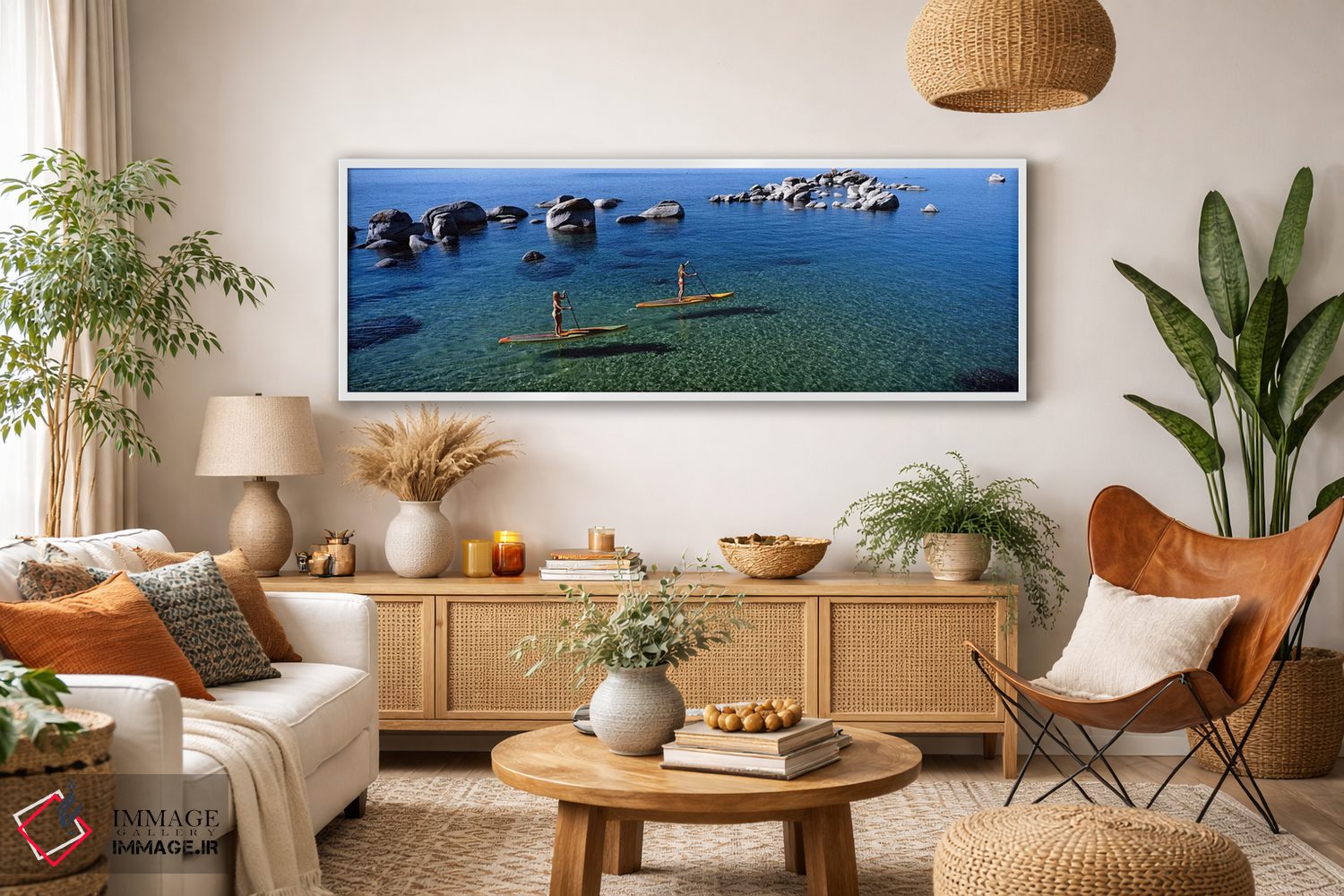 «Lake Tahoe، California، USA، دو زن در حال پارو زدن روی برد در دریاچه، دریاچه تاهو، کالیفرنیا، آمریکا» اثرِ «پانورامیک ایمجز (استودیو عکاسی عریض)» میتواند دیوار را از تزئین به «حضور» تبدیل کند؛ برای دکورهایی که بافت و جزئیات در آن مهم است پیشنهاد میشود. فضا را شلوغ نمیکند؛ فقط دقیقترش میکند.