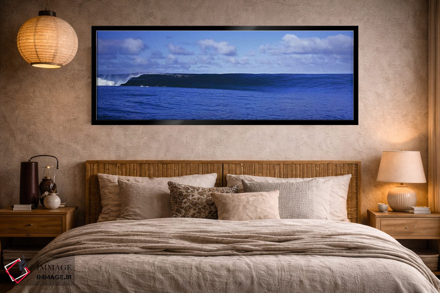 این تابلو با عنوان «پاشش موجها در دریا» اثرِ «پانورامیک ایمجز (استودیو عکاسی عریض)» اتاق را جمعوجورتر و مرتبتر نشان میدهد؛ برای اتاق خوابهای آرام و روشن پیشنهاد میشود. در کنار نورپردازی نقطهای، جلوهاش حرفهایتر میشود.