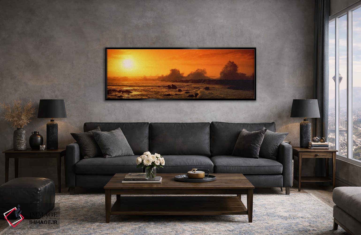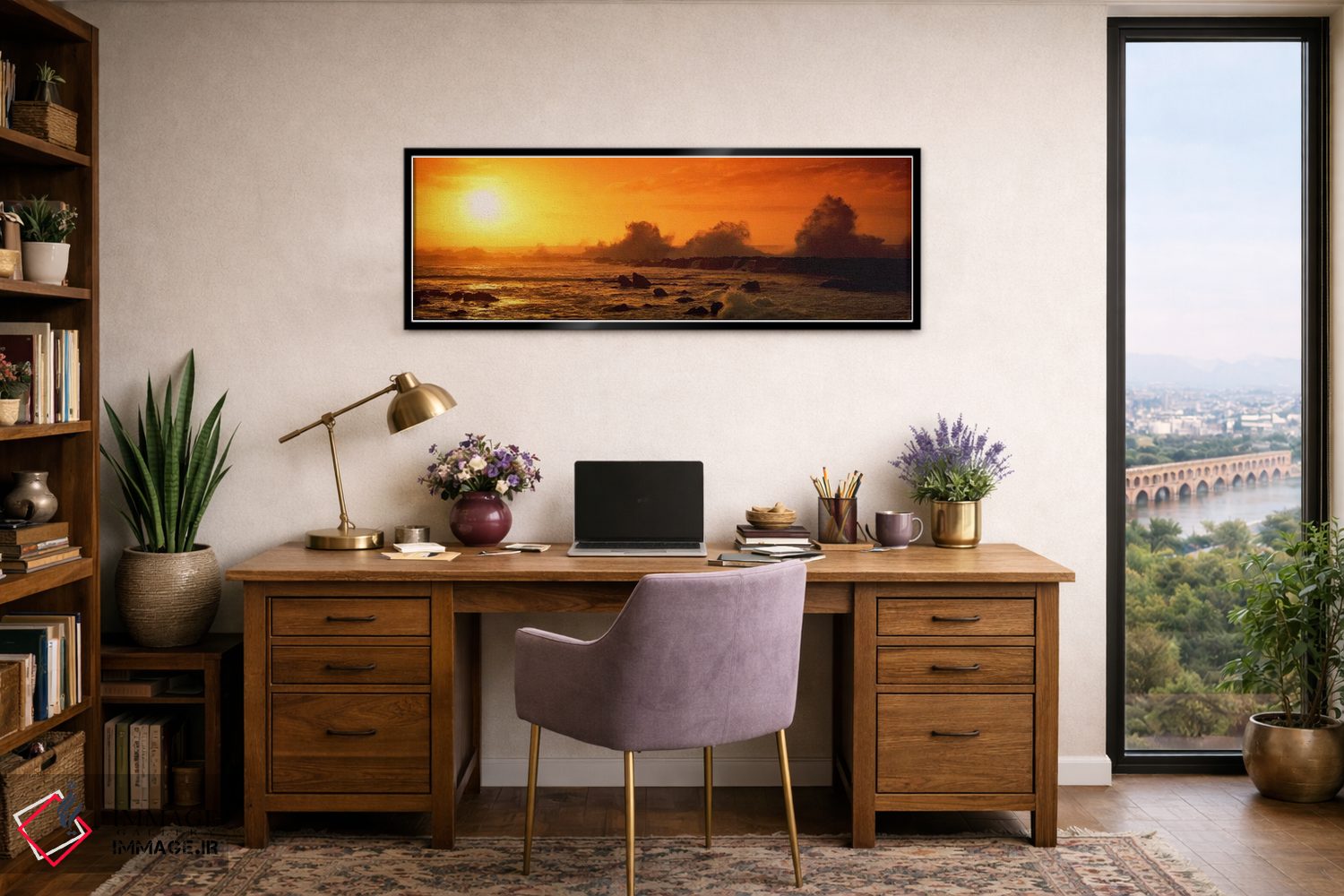 براساس پالت گرم اثر، قاب تیک گرم (چوبی) پیشنهاد اول است و مشکی مات (فریم متوسط) مکمل. برای سفارشهای پروژهای با ابعاد و قابهای اختصاصی با ایماژ در تماس باشید.