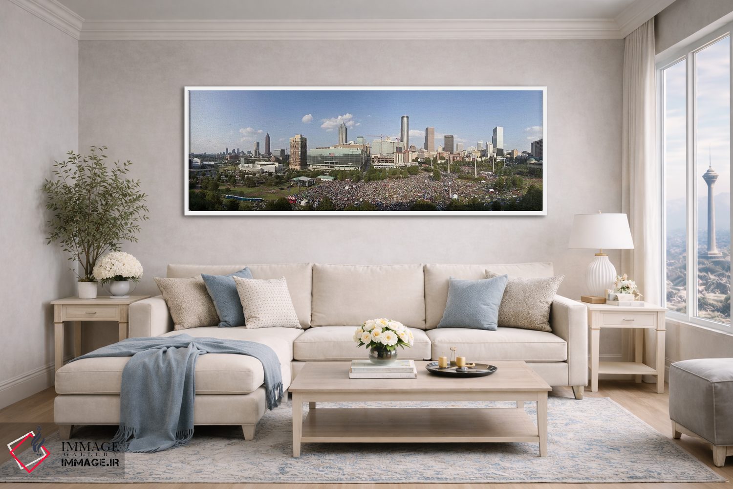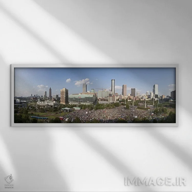 «Centennial Olympic Park، Atlanta، Georgia، USA، جشن چهارم ژوئیه، پارک المپیک صدساله، آتلانتا، جورجیا، ایالات متحده آمریکا» اثرِ «پانورامیک ایمجز (استودیو عکاسی عریض)» از آن انتخابهاییست که به چیدمان، عمق و وقار میدهد؛ برای خانههایی که به هماهنگی رنگها اهمیت میدهند انتخابی عالی است. در کنار قاب مناسب، جلوهٔ کار چند برابر میشود.