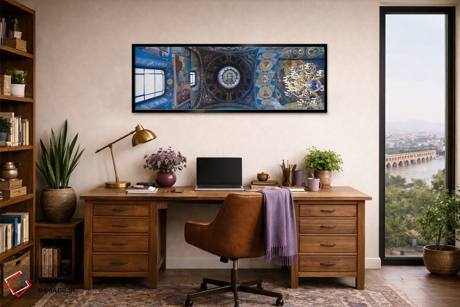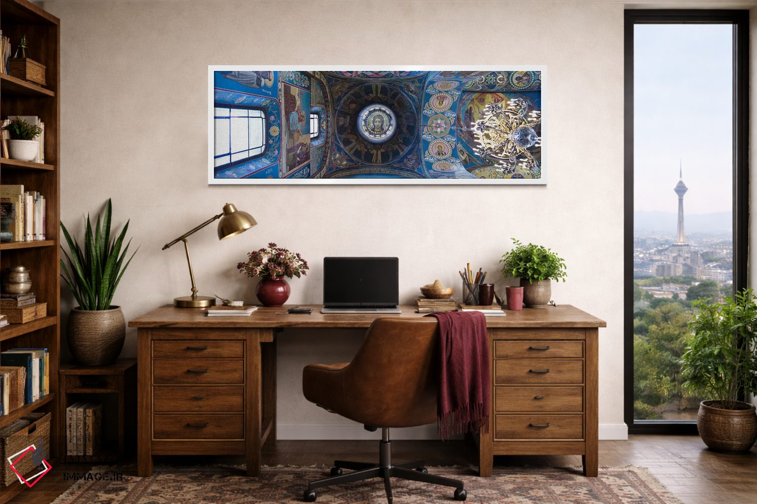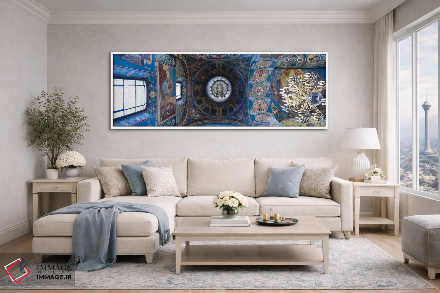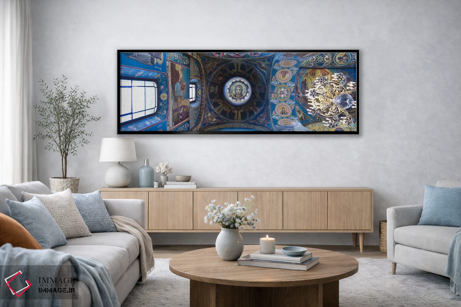 برای فضایی که میخواهید مرتبتر و حرفهایتر دیده شود، «Church of The Savior On Spilled Blood، St. Petersburg، Russia، فضای داخلی کلیسا، کلیسای ناجی بر خون ریختهشده، سن پترزبورگ، روسیه» اثرِ «پانورامیک ایمجز (استودیو عکاسی عریض)» اتاق را جمعوجورتر و مرتبتر نشان میدهد؛ برای خانههایی که به هماهنگی رنگها اهمیت میدهند پیشنهاد میشود. این تابلو میتواند شروعِ خوبی برای یک دیوار گالری باشد.