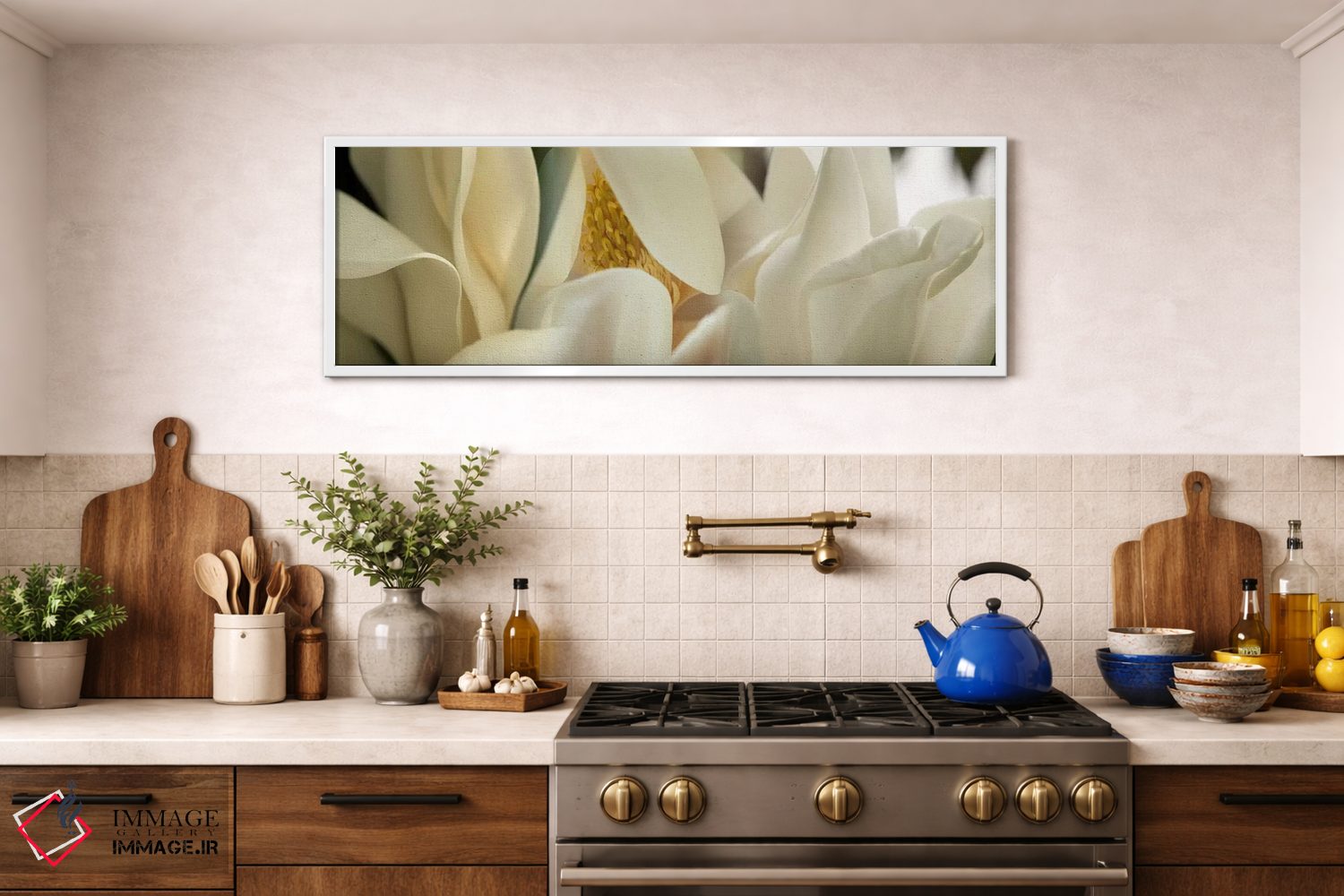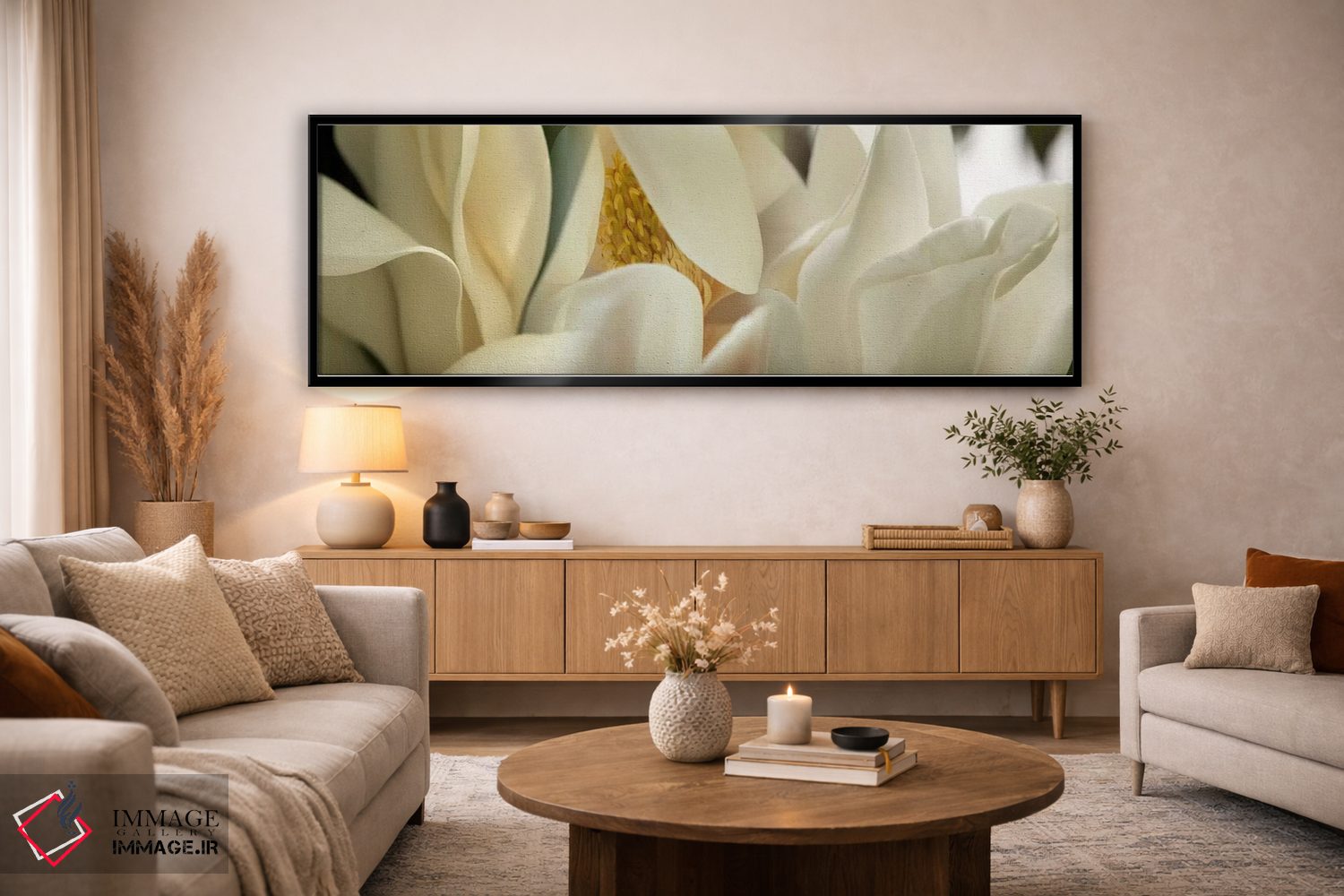 برای فضاهایی که به لطافت نیاز دارند، «گلهای ماگنولیا #۴» اثرِ «پانورامیک ایمجز (استودیو عکاسی عریض)» چیدمان را از خشکی بیرون میآورد؛ برای خانههایی با نور طبیعی انتخابی خوشسلیقه است. با قاب روشن یا چوبی، حس طبیعیتری پیدا میکند.