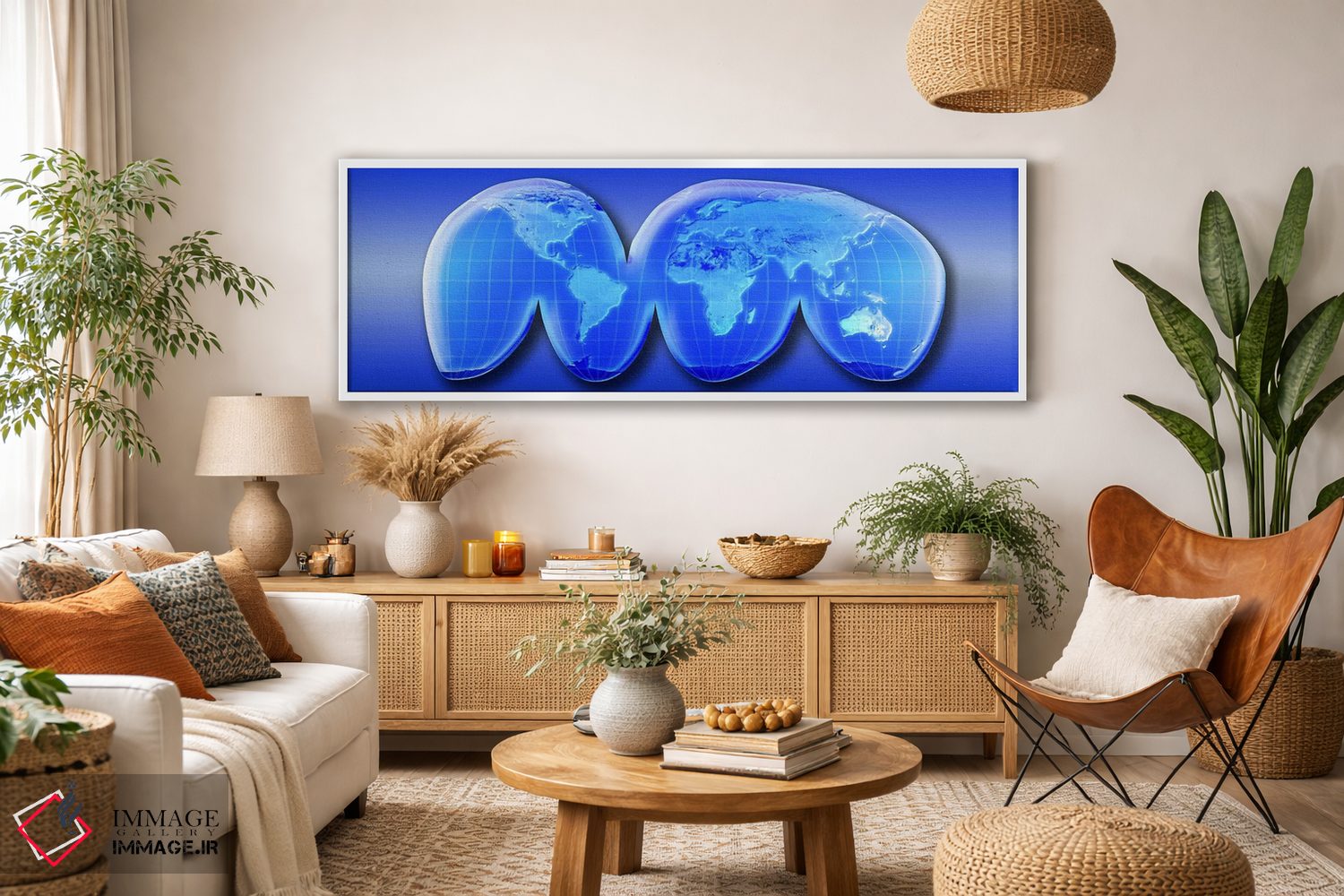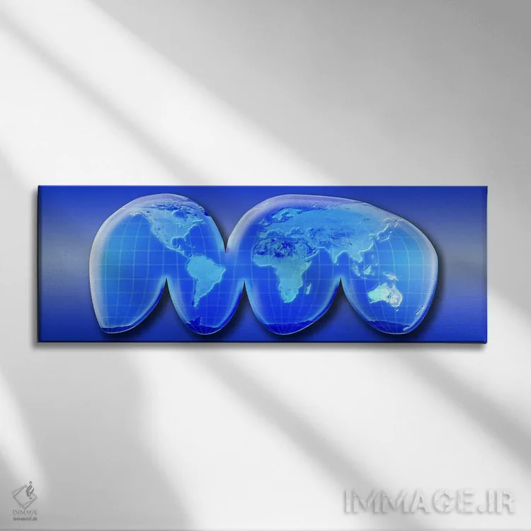 تابلو انتزاعی نقشه جهان با تصویرنگاشت هومولوساین گود اثر پانورامیک ایمجز - D5B