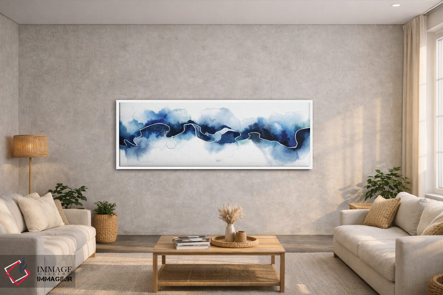 براساس پالت سرد اثر، قاب سفید مات (فریم باریک) پیشنهاد اول است و نقرهای برسخورده (متالیک) مکمل. برای سفارشهای پروژهای با ابعاد و قابهای اختصاصی با ایماژ در تماس باشید.