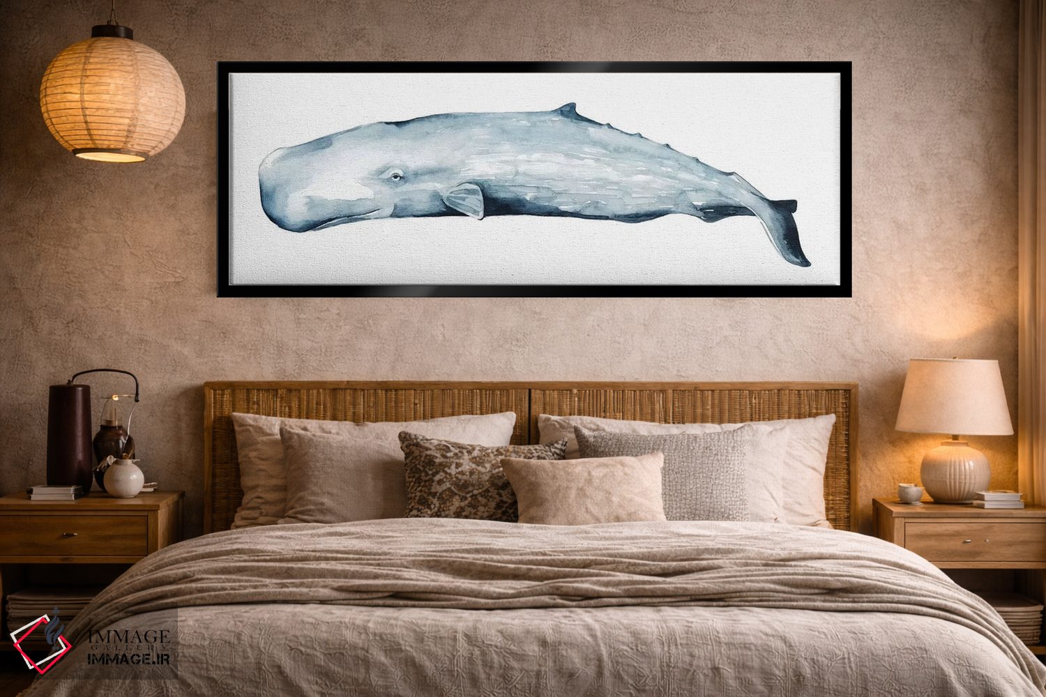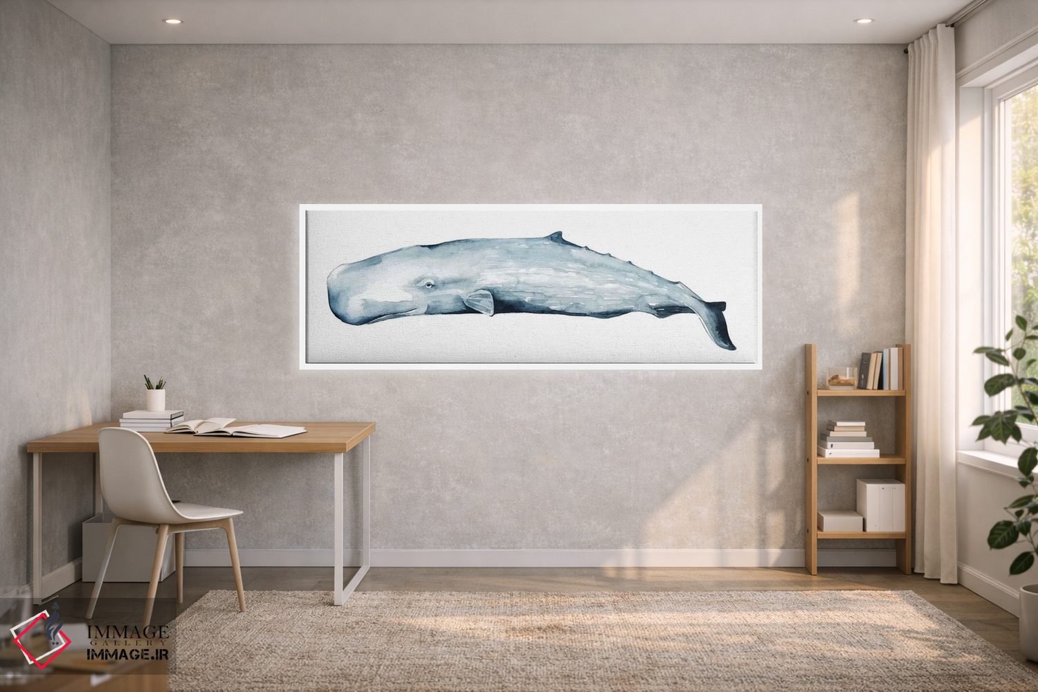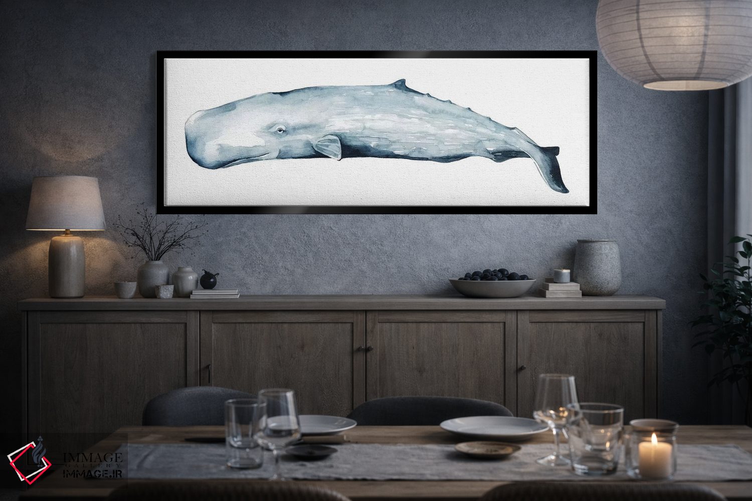 در «پرتره نهنگ دوم» اثرِ «گریس پاپ»، حضور حیوانات در کنار رنگهای خنثی، تضاد دلچسبی میسازد؛ برای دکورهایی با رنگهای خنثی انتخابی خوشسلیقه است. هر بار نگاهش میکنید، یک جزئیات تازه به چشم میآید.