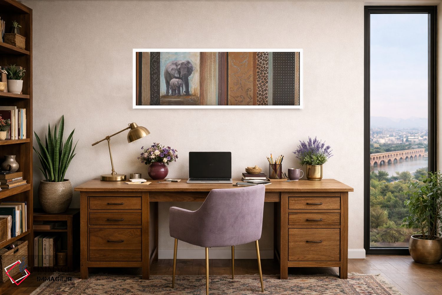 اگر به آثار حیوانات علاقه دارید، «آفریقا میا II (عبارت اسپانیایی)» اثرِ «پاتریشیا پینتو» در کنار رنگهای خنثی، تضاد دلچسبی میسازد، برای خانههایی با چوب و پارچههای گرم گزینهٔ مناسبیست. حسش صمیمی است، اما کیفیتش جدی و خوشپرداخت.