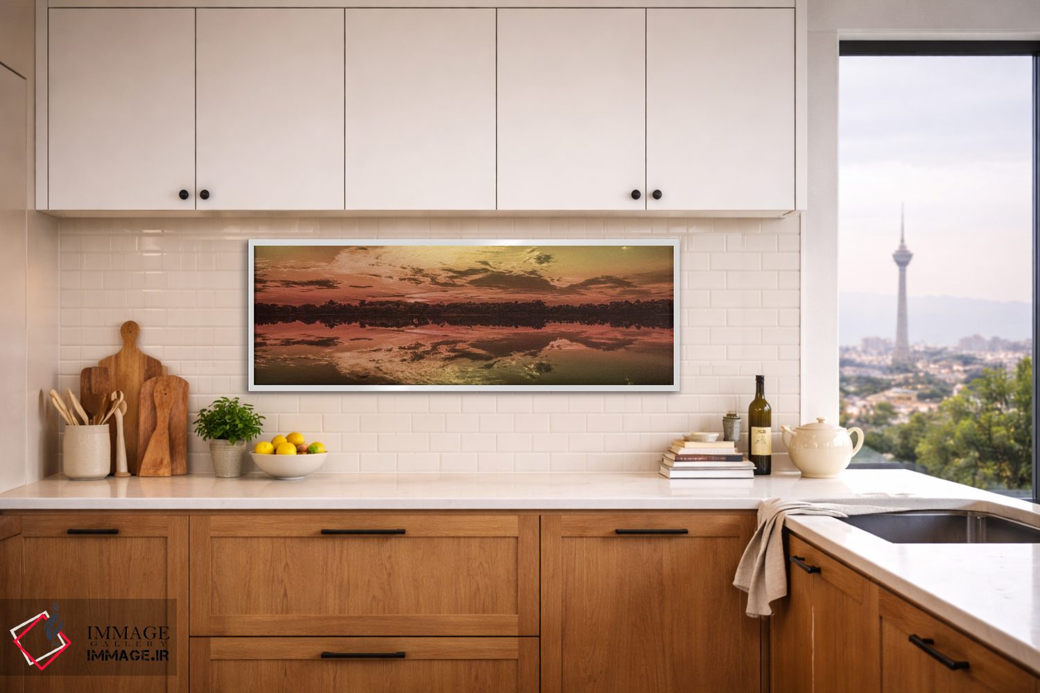 براساس پالت گرم اثر، قاب تیک گرم (چوبی) پیشنهاد اول است و مشکی مات (فریم متوسط) مکمل. برای سفارشهای پروژهای با ابعاد و قابهای اختصاصی با ایماژ در تماس باشید.