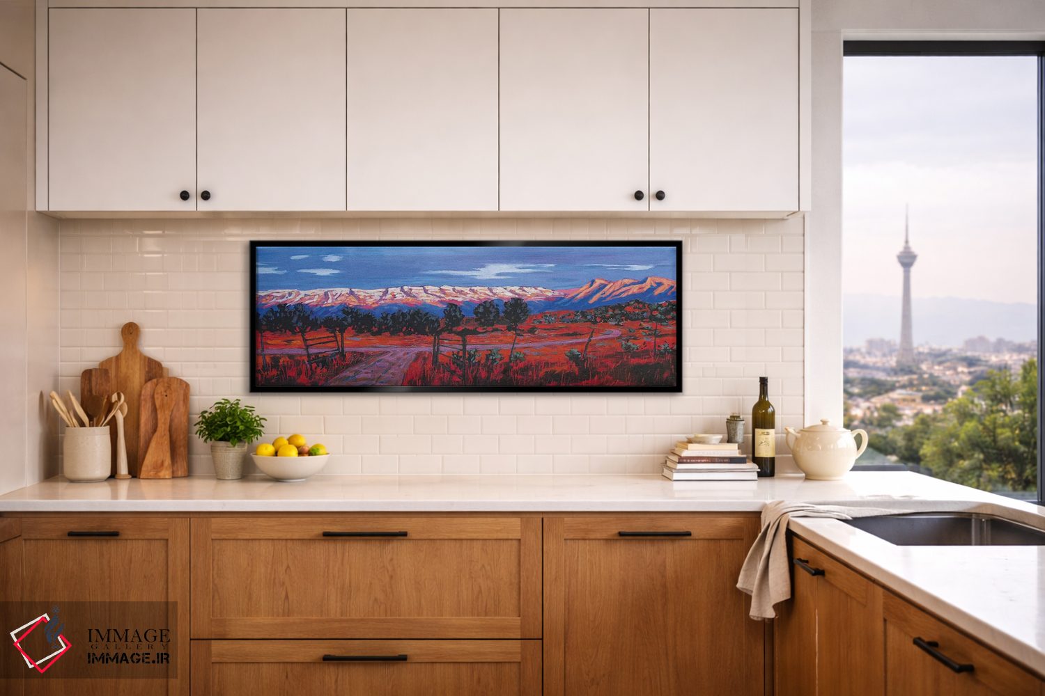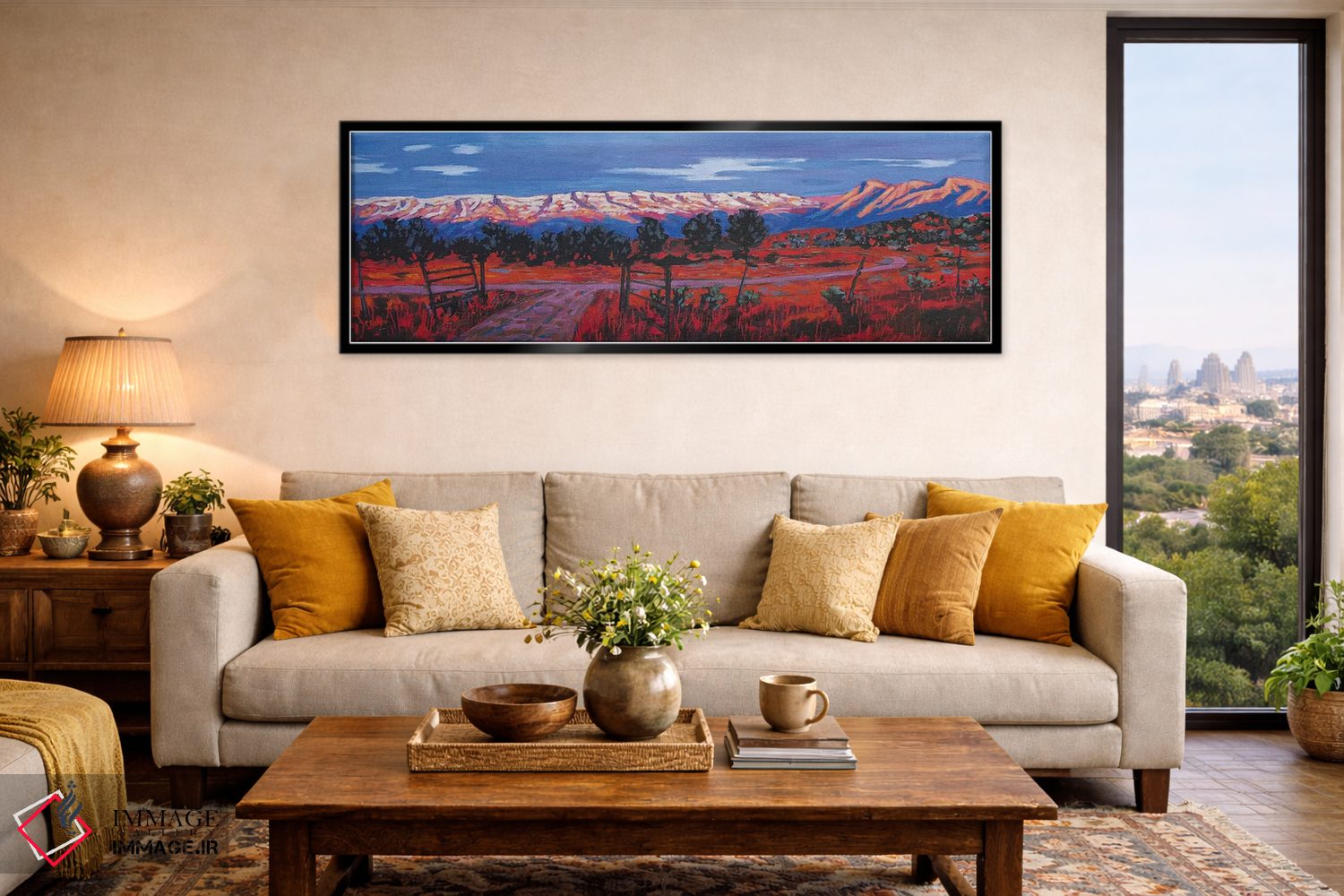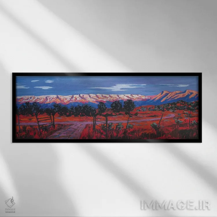 براساس پالت ترکیبی اثر، قاب تیک گرم (چوبی) پیشنهاد اول است و مشکی مات (فریم متوسط) مکمل. برای سفارشهای پروژهای با ابعاد و قابهای اختصاصی با ایماژ در تماس باشید.