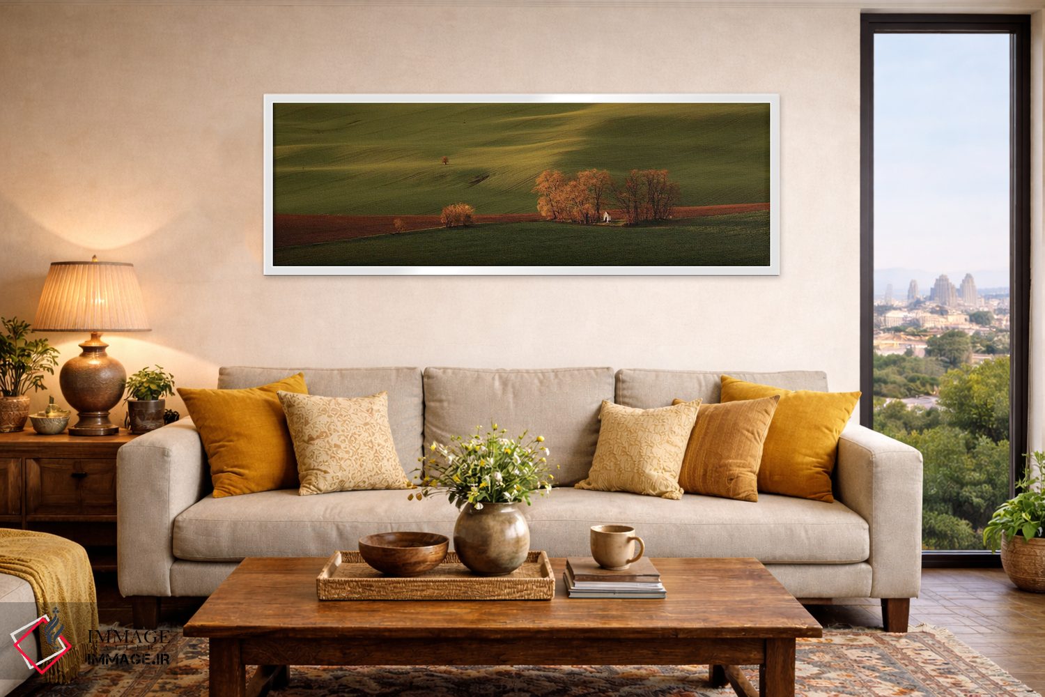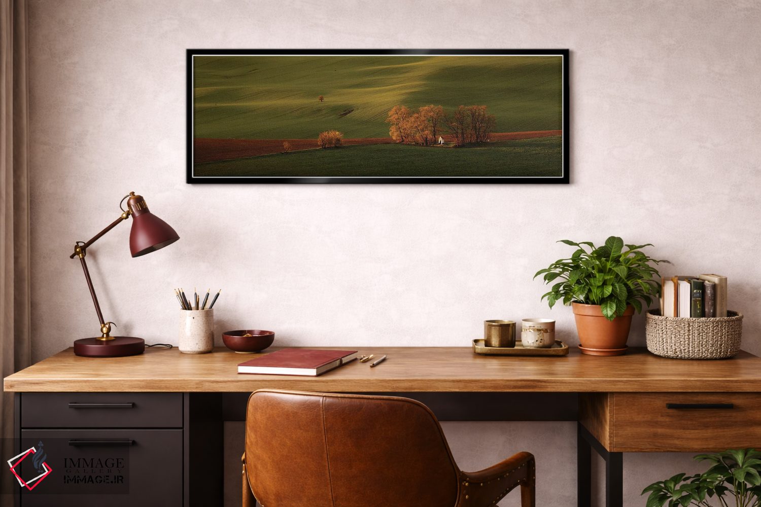 براساس پالت ترکیبی اثر، قاب تیک گرم (چوبی) پیشنهاد اول است و مشکی مات (فریم متوسط) مکمل. برای سفارشهای پروژهای با ابعاد و قابهای اختصاصی با ایماژ در تماس باشید.