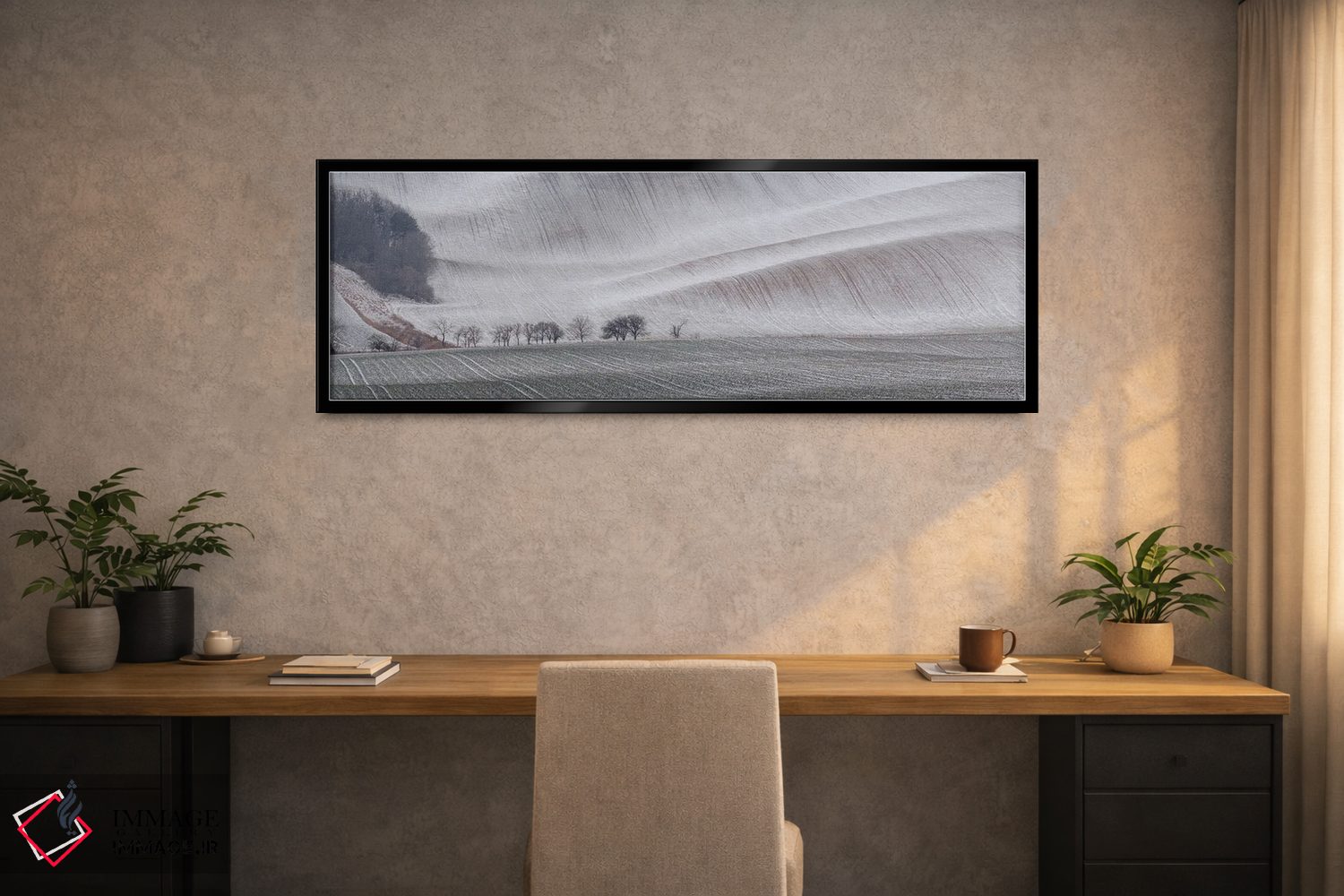 براساس پالت خنثی اثر، قاب مشکی مات (فریم باریک) پیشنهاد اول است و سفید مات (فریم باریک) مکمل. برای سفارشهای پروژهای با ابعاد و قابهای اختصاصی با ایماژ در تماس باشید.