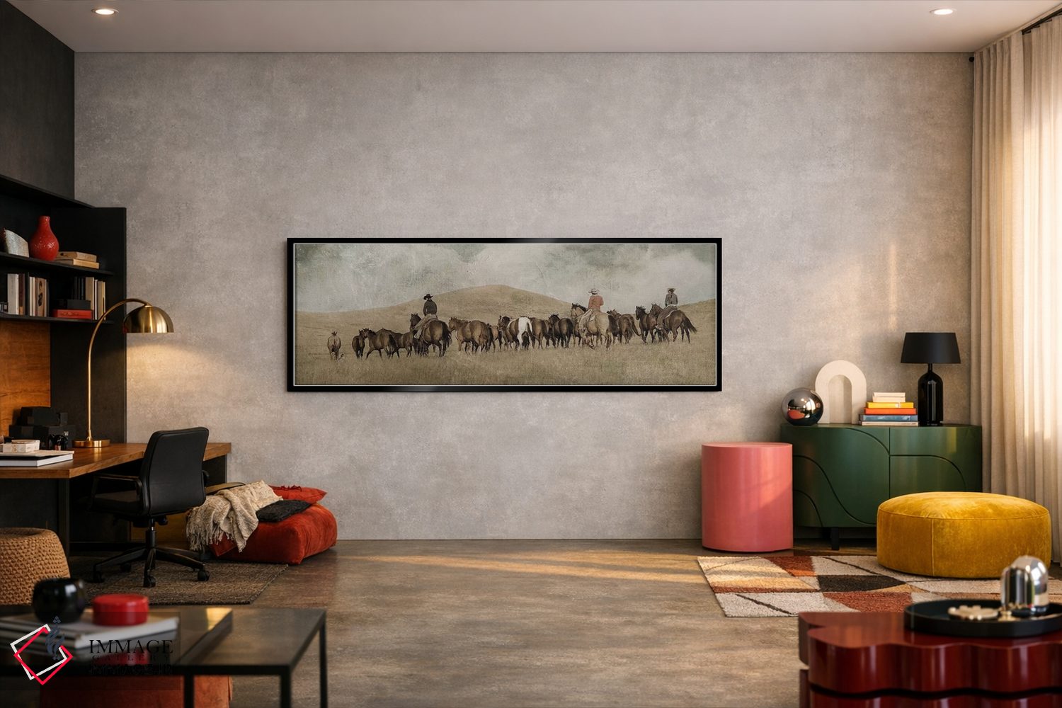 بوم گالری ایماژ نسخهی چیدماناتیوِ سطحبالا از یک اثر هنری است؛ روی کنواس بدون اسید با بافت ظریف و یکنواخت با چاپ هنریِ دقیق (Giclée) برای گذارهای نرمتر و وضوح بالاتر و جوهرهای آرشیوی Epson UltraChrome HDR برای بازنمایی بهتر تونهای حساس؛ این ترکیب باعث میشود گذارهای رنگی نرمتر و بافتها خواناتر شوند. کلافکشی مرتب و یراق نصب استاندارد، تجربهی نصب را ساده میکند.