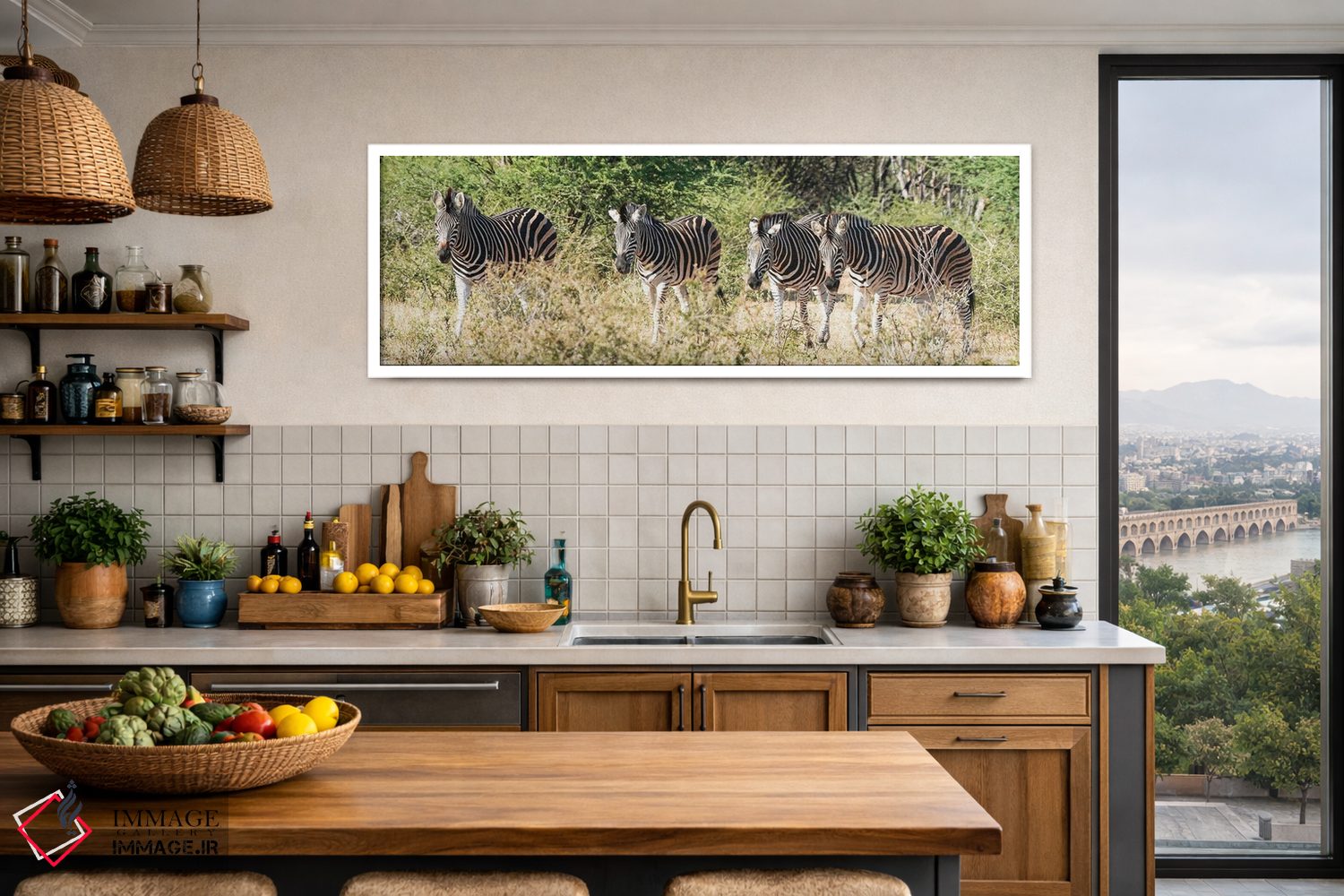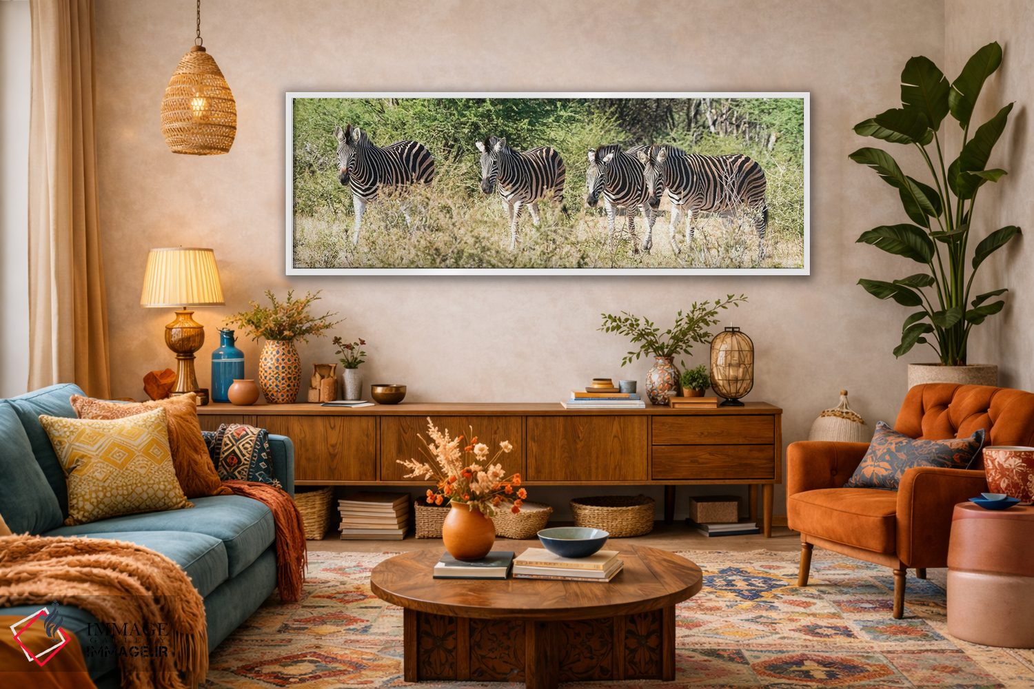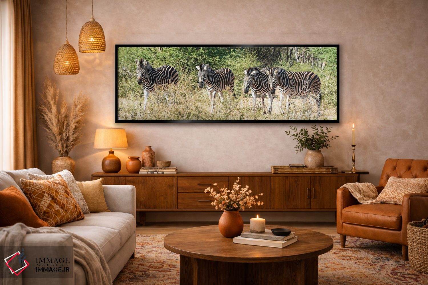 اگر میخواهید دیوار کمی سرزندگیِ محترمانه داشته باشد، «چهار گورخر آفریقایی» اثرِ «رندا تامپسون» فضا را صمیمیتر و دعوتکنندهتر نشان میدهد، برای هدیهدادن به دوستداران حیوانات گزینهٔ مناسبیست. هر بار نگاهش میکنید، یک جزئیات تازه به چشم میآید.