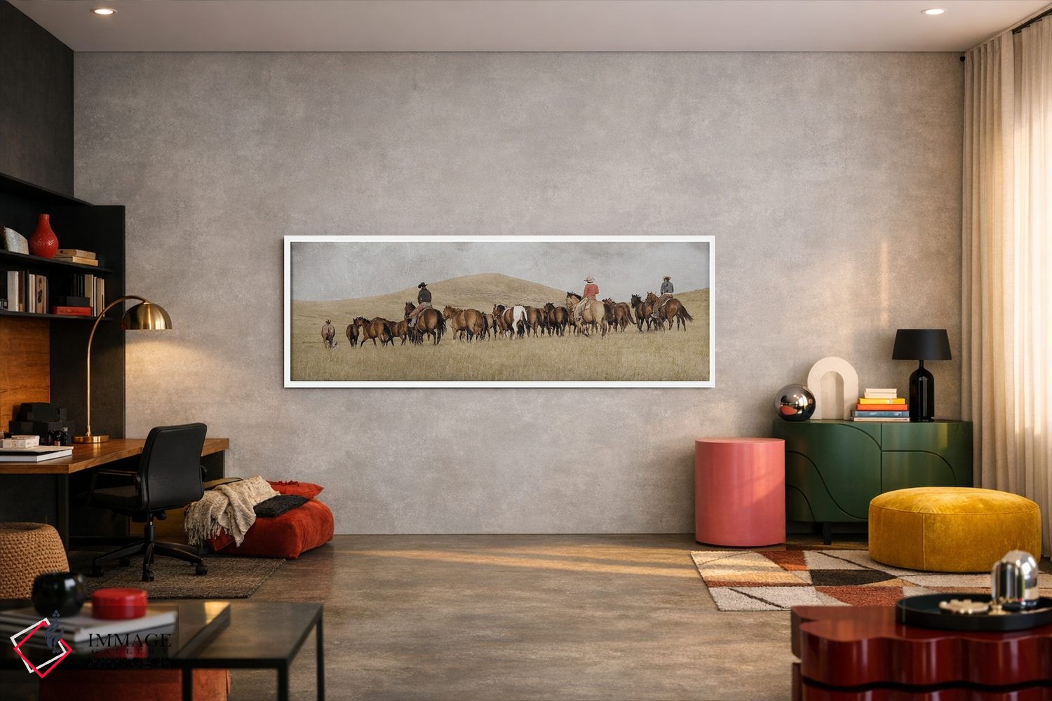 بوم گالری ایماژ نسخهی چیدماناتیوِ سطحبالا از یک اثر هنری است؛ روی کنواس سفیدِ یکدست و بدون اسید با چاپ هنری به استاندارد جیکلی (Giclée) با رنگدانههای آرشیوی و سیستم رنگ دقیق، خروجی، یک «تابلو» است نه یک چاپ ساده. هر تابلو بهصورت سفارشی روی چهارچوب کشیده میشود و با یراق مناسب آمادهی نصب است.