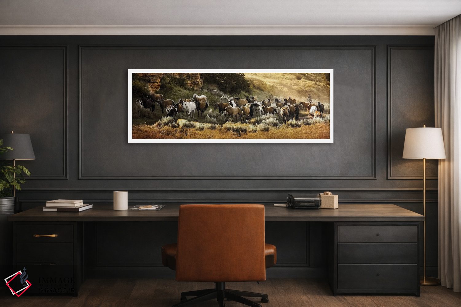 براساس پالت گرم اثر، قاب بلوط روشن (چوبی) پیشنهاد اول است و استخوانی ملایم مکمل. برای سفارشهای پروژهای با ابعاد و قابهای اختصاصی با ایماژ در تماس باشید.