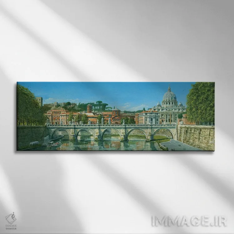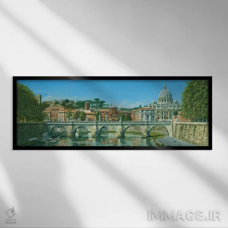 «رود تیبر، رم، ایتالیا» اثرِ «ریچارد هارپوم» ترکیببندی متعادل دارد و به دیوار وقار میدهد؛ بدون اینکه فضا را سنگین کند.
