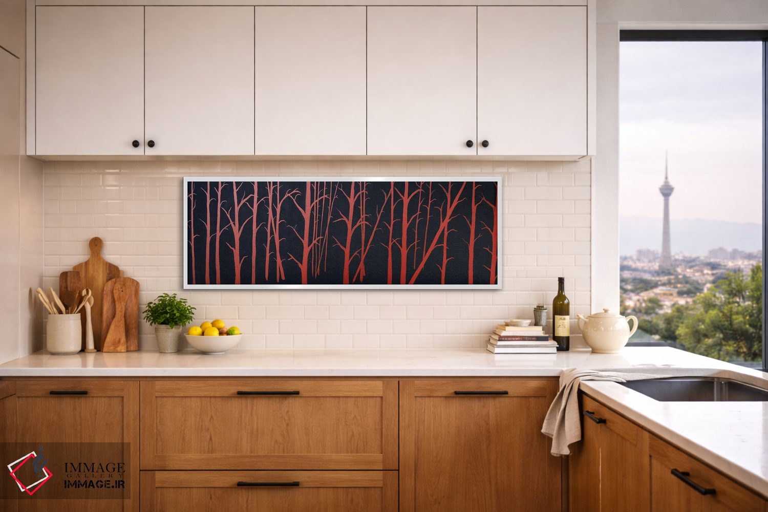 براساس پالت گرم اثر، قاب تیک گرم (چوبی) پیشنهاد اول است و مشکی مات (فریم متوسط) مکمل. برای سفارشهای پروژهای با ابعاد و قابهای اختصاصی با ایماژ در تماس باشید.