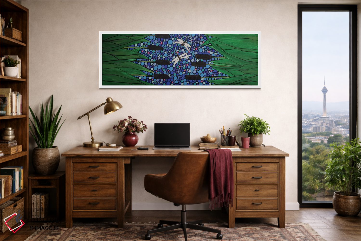 براساس پالت ترکیبی اثر، قاب تیک گرم (چوبی) پیشنهاد اول است و مشکی مات (فریم متوسط) مکمل. برای سفارشهای پروژهای با ابعاد و قابهای اختصاصی با ایماژ در تماس باشید.