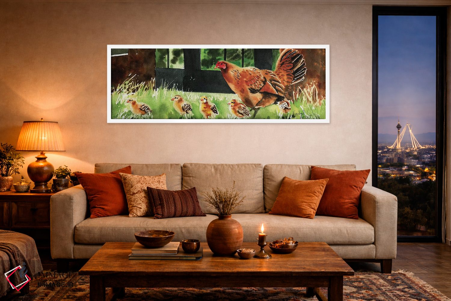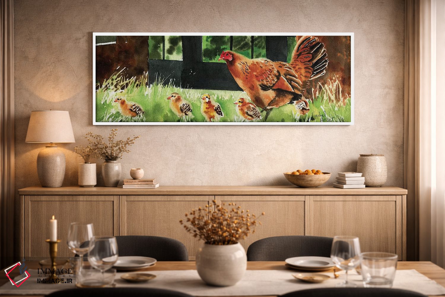 برای دکورهای صمیمی، «مادر مرغ» اثرِ «ریچل پارکر» فضا را صمیمیتر و دعوتکنندهتر نشان میدهد؛ برای فضاهای روستیک یا بوهو انتخابی خوشسلیقه است. با نورپردازی نقطهای، جذابتر هم میشود.