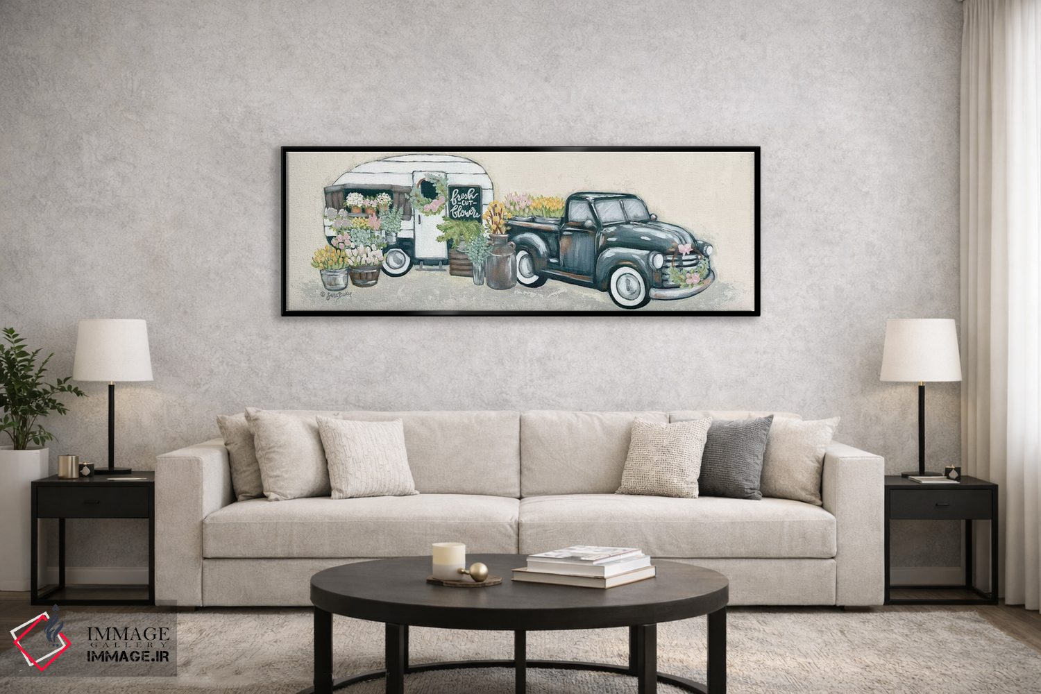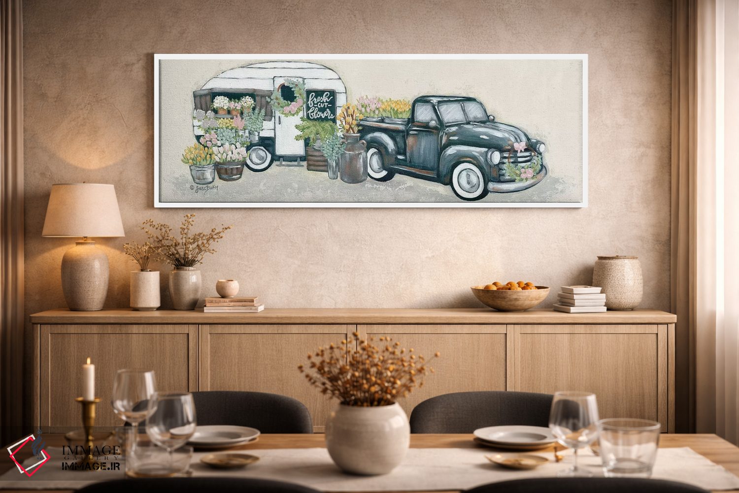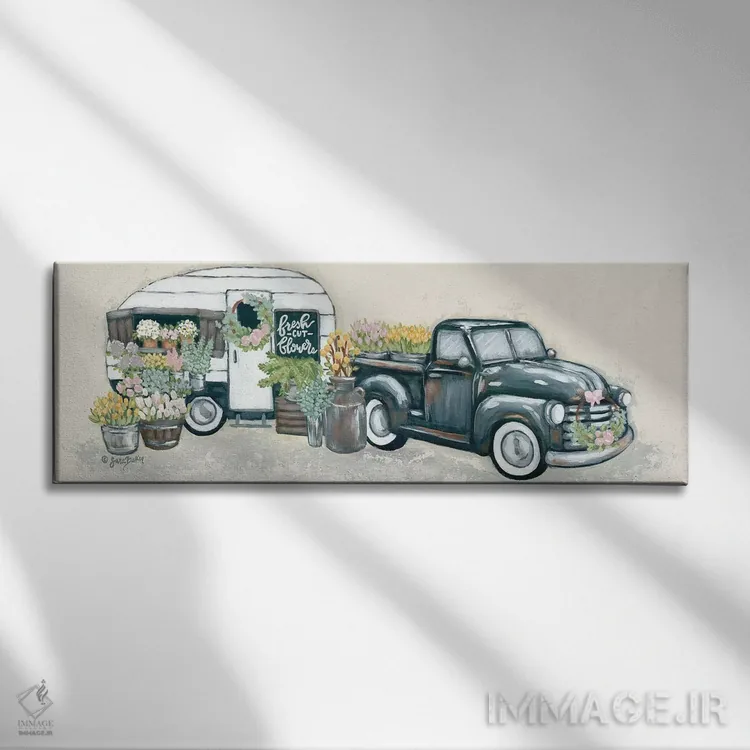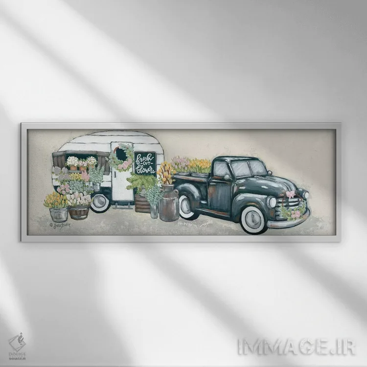 تابلو دکوراتیو کامیون و یدک کش گل کلاسیک اثر سارا بیکر