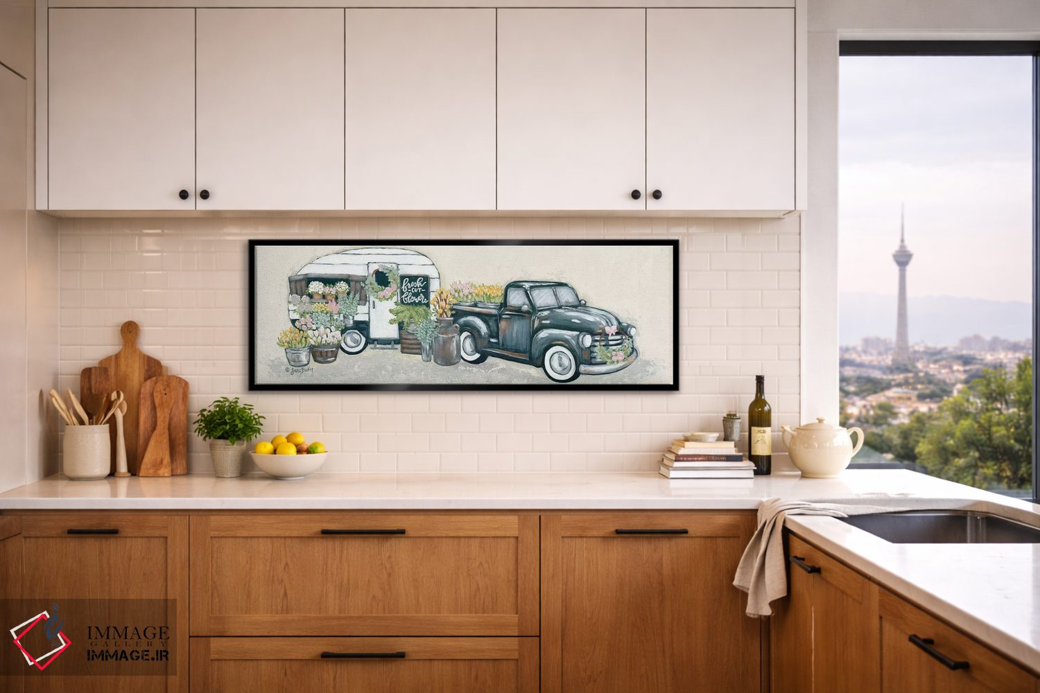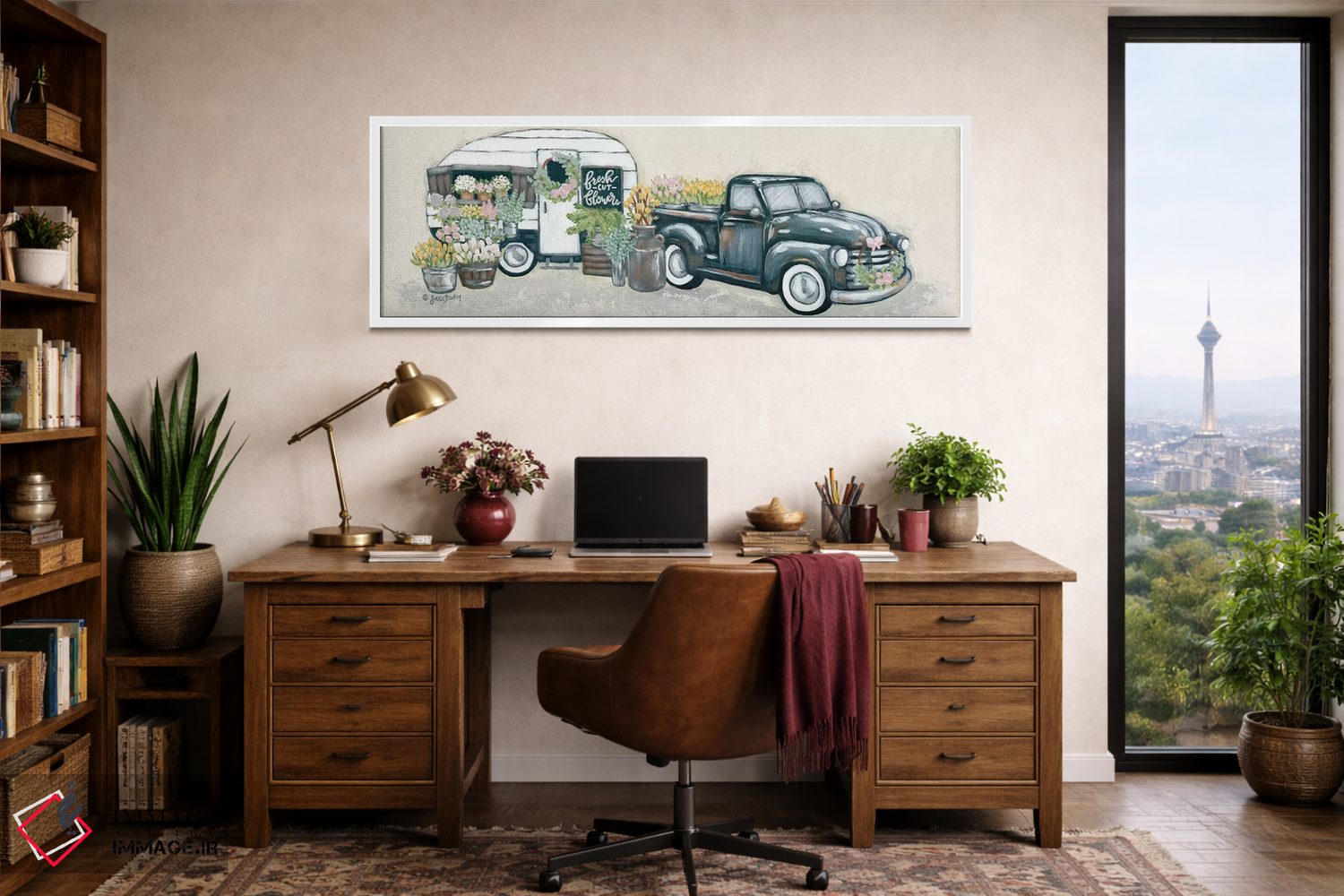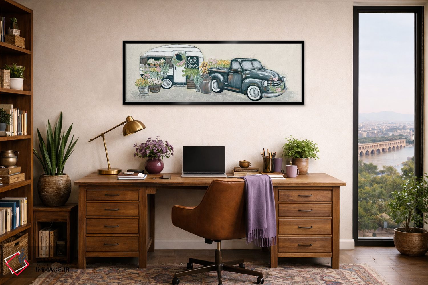 تابلو دکوراتیو کامیون و یدک کش گل کلاسیک اثر سارا بیکر