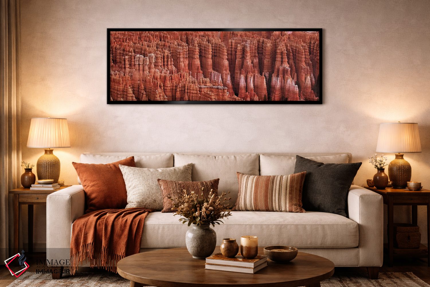 برای خانههایی که به زیباییِ آرام علاقه دارند، «Utah، برایس کانیون، یوتا (امریکا)» اثرِ «اسکات بنیون» سلیقهٔ صاحبخانه را بیاغراق نشان میدهد؛ برای کنار کتابخانه یا میز کار پیشنهاد میشود. در کنار نورپردازی نقطهای، جلوهاش حرفهایتر میشود.