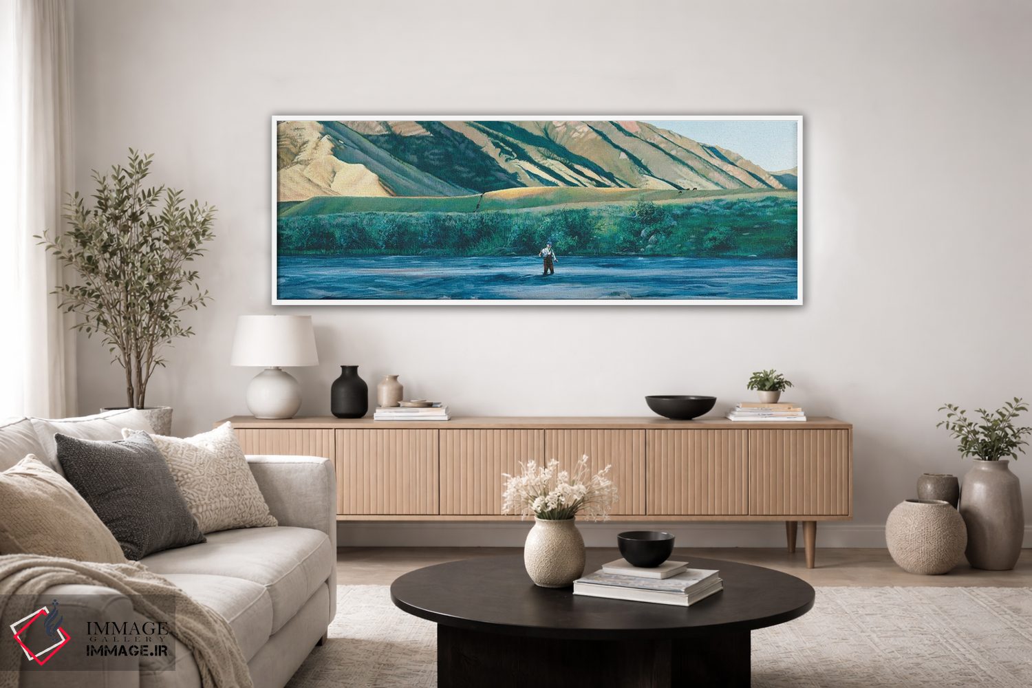 براساس پالت سرد اثر، قاب بلوط روشن (چوبی) پیشنهاد اول است و استخوانی ملایم مکمل. برای سفارشهای پروژهای با ابعاد و قابهای اختصاصی با ایماژ در تماس باشید.