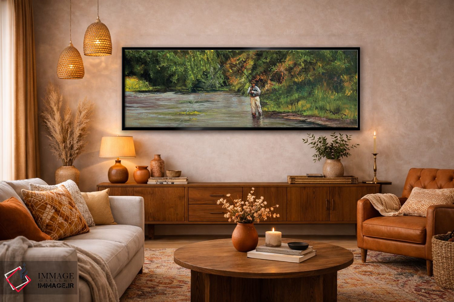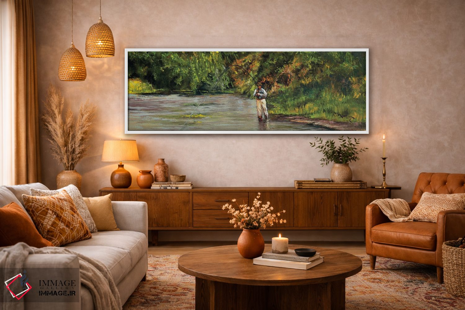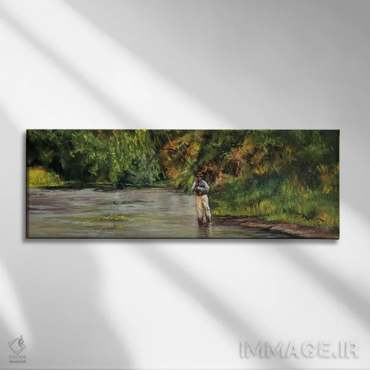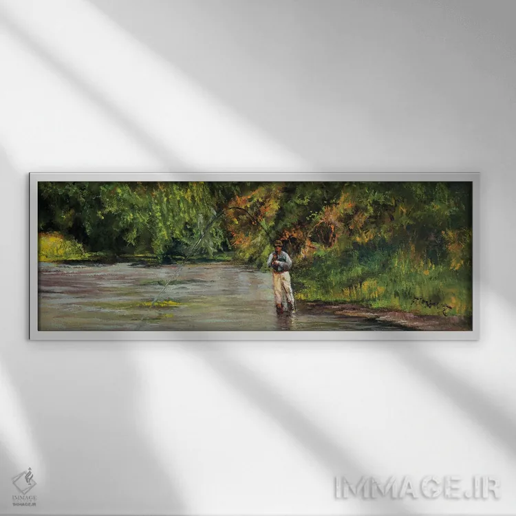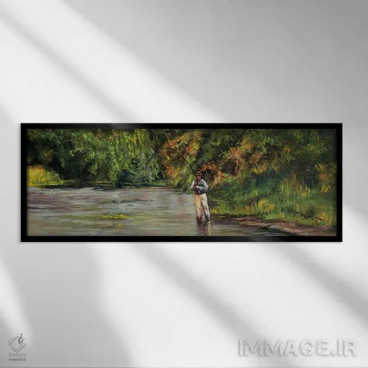 «صید ماهی در جویبار کوچک» اثرِ «شرلی کلیری» با حالوهوای دکور کلبه و لژ و موضوعِ این اثر، برای کنار چوب تیره و نور گرم انتخابی گرم و صمیمی است.