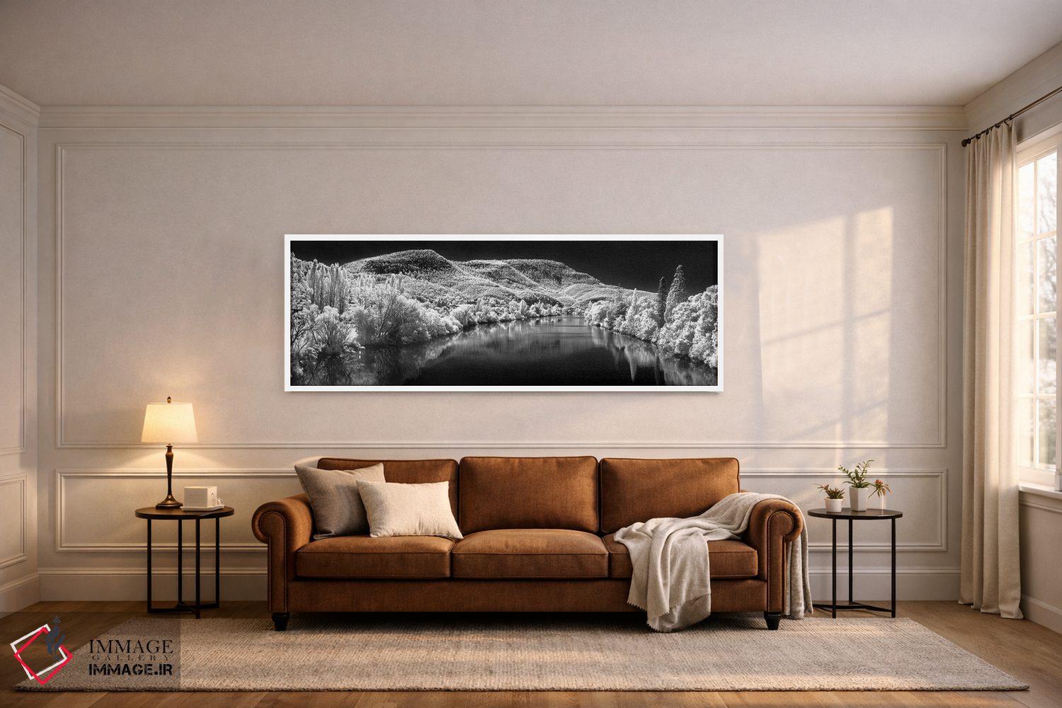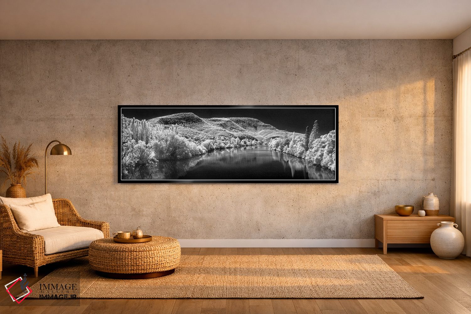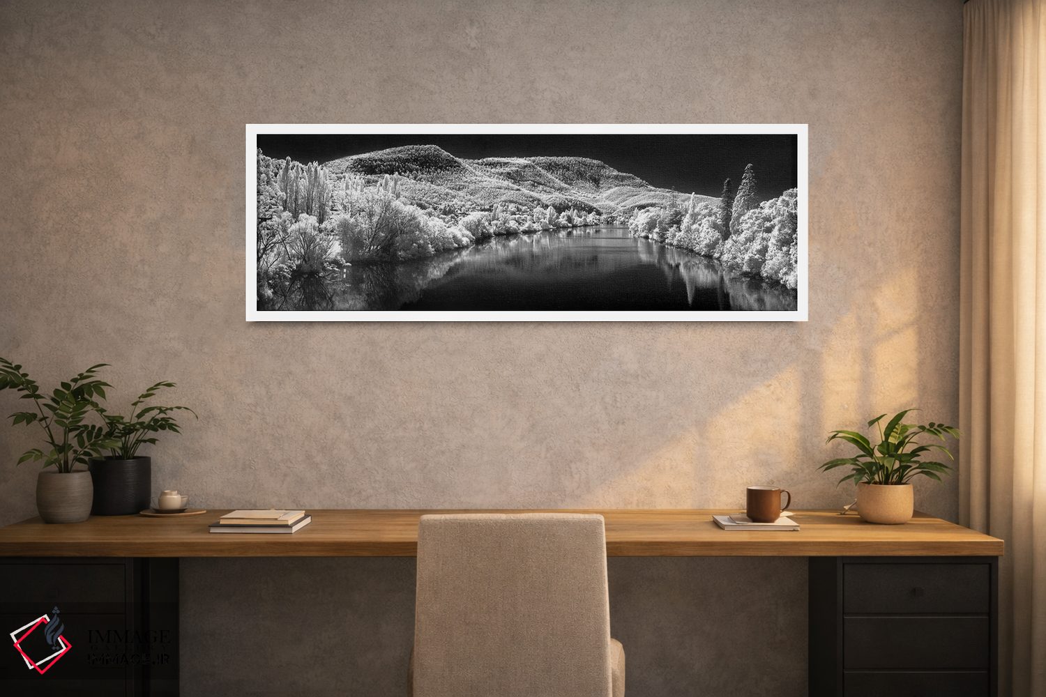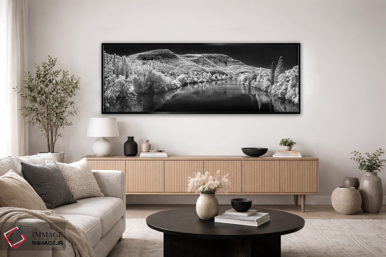 براساس پالت خنثی اثر، قاب مشکی مات (فریم باریک) پیشنهاد اول است و سفید مات (فریم باریک) مکمل. برای سفارشهای پروژهای با ابعاد و قابهای اختصاصی با ایماژ در تماس باشید.