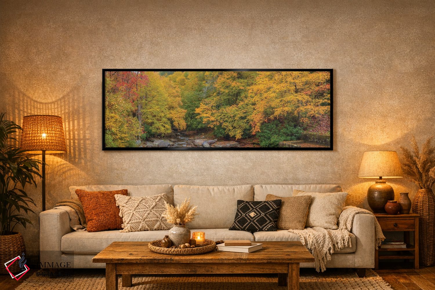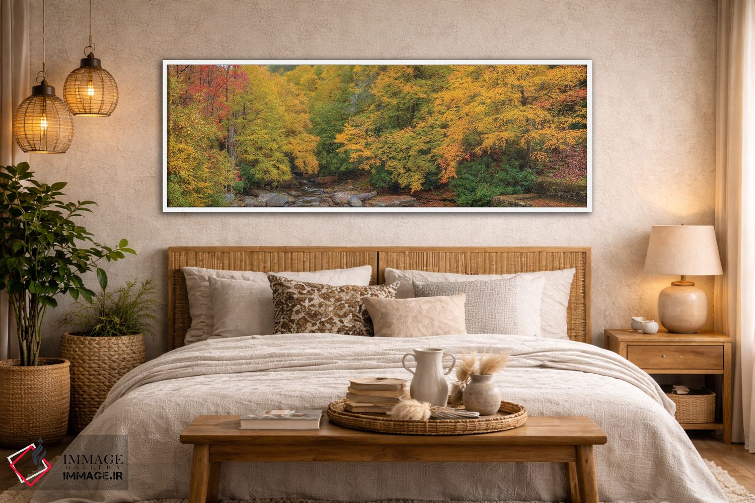 براساس پالت ترکیبی اثر، قاب تیک گرم (چوبی) پیشنهاد اول است و مشکی مات (فریم متوسط) مکمل. برای سفارشهای پروژهای با ابعاد و قابهای اختصاصی با ایماژ در تماس باشید.
