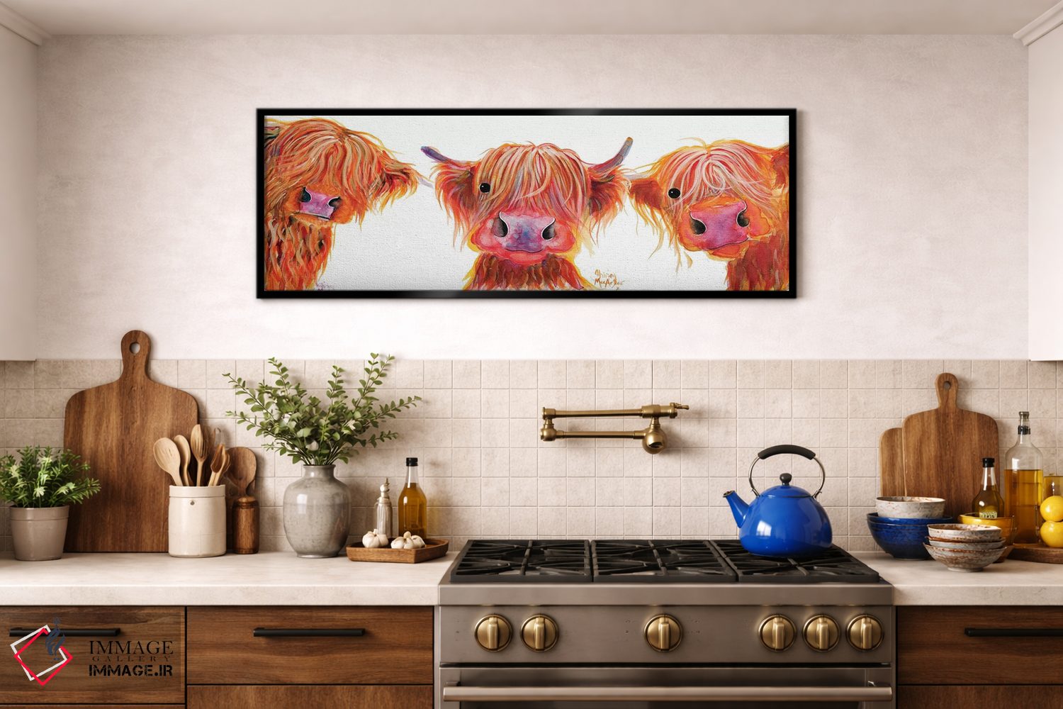 در «پرتقالها» اثرِ «شرلی مکآرتور»، حضور حیوانات به دیوار، انرژیِ نرم و زنده میدهد؛ برای نشیمنهای خانوادگی انتخابی خوشسلیقه است. حسش صمیمی است، اما کیفیتش جدی و خوشپرداخت.