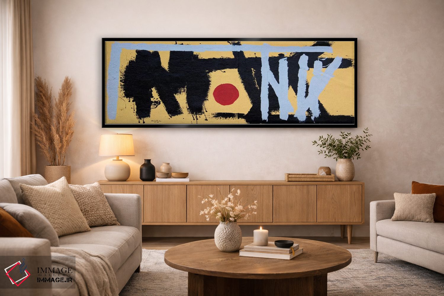 براساس پالت گرم اثر، قاب تیک گرم (چوبی) پیشنهاد اول است و مشکی مات (فریم متوسط) مکمل. برای سفارشهای پروژهای با ابعاد و قابهای اختصاصی با ایماژ در تماس باشید.