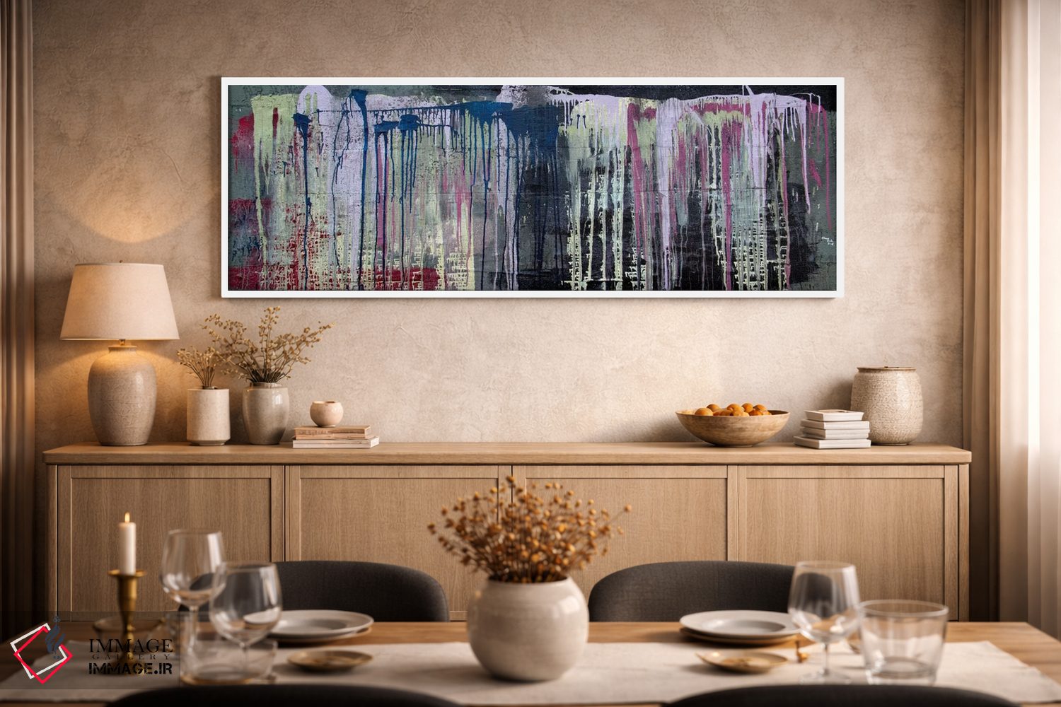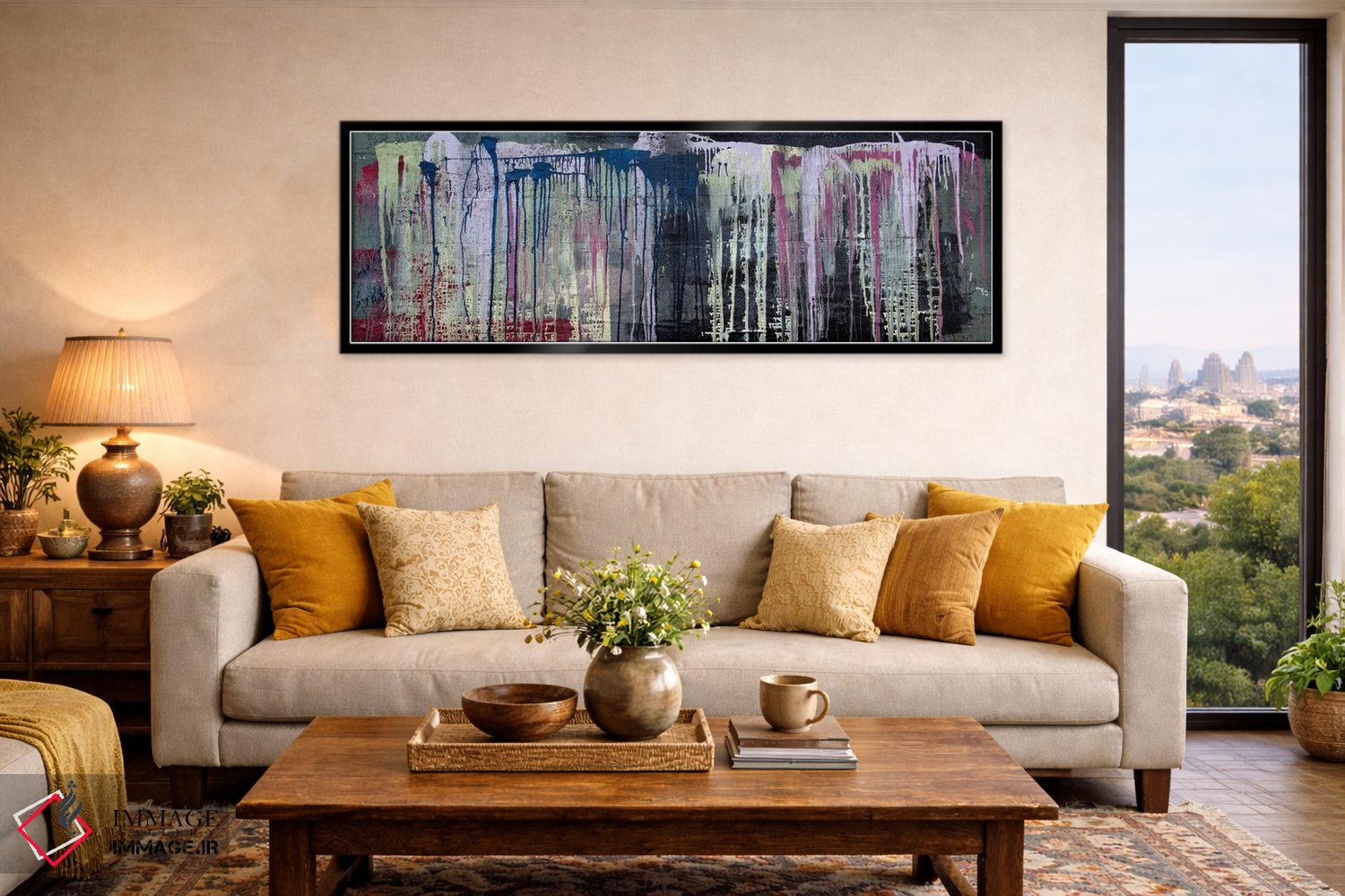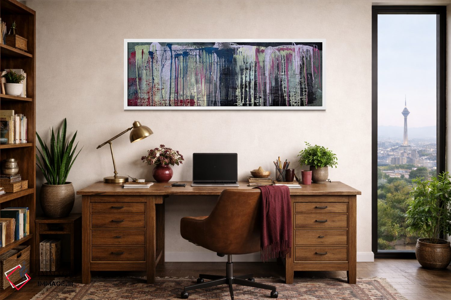 براساس پالت ترکیبی اثر، قاب تیک گرم (چوبی) پیشنهاد اول است و مشکی مات (فریم متوسط) مکمل. برای سفارشهای پروژهای با ابعاد و قابهای اختصاصی با ایماژ در تماس باشید.