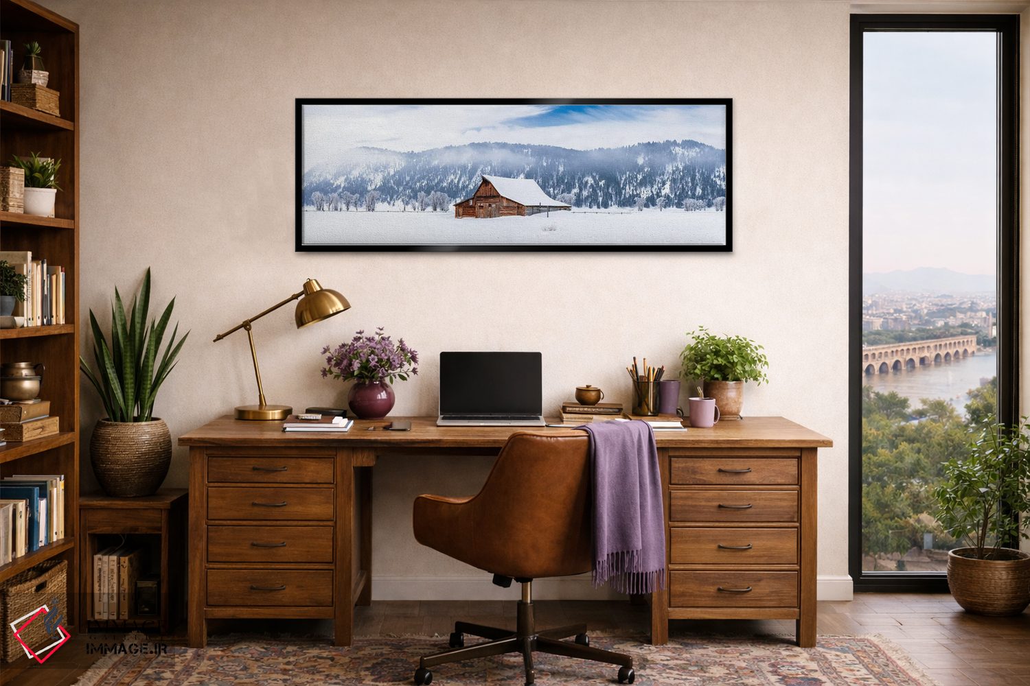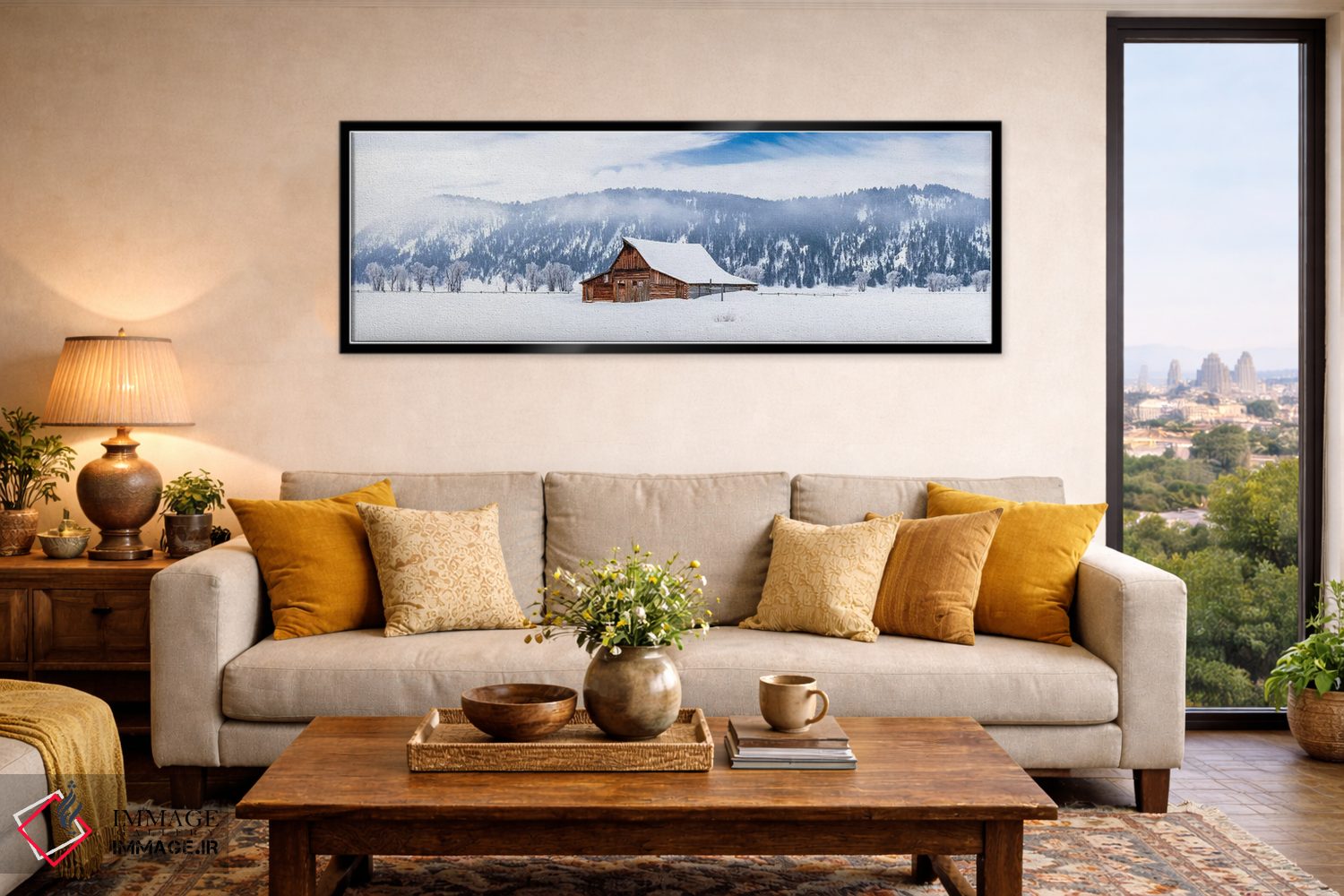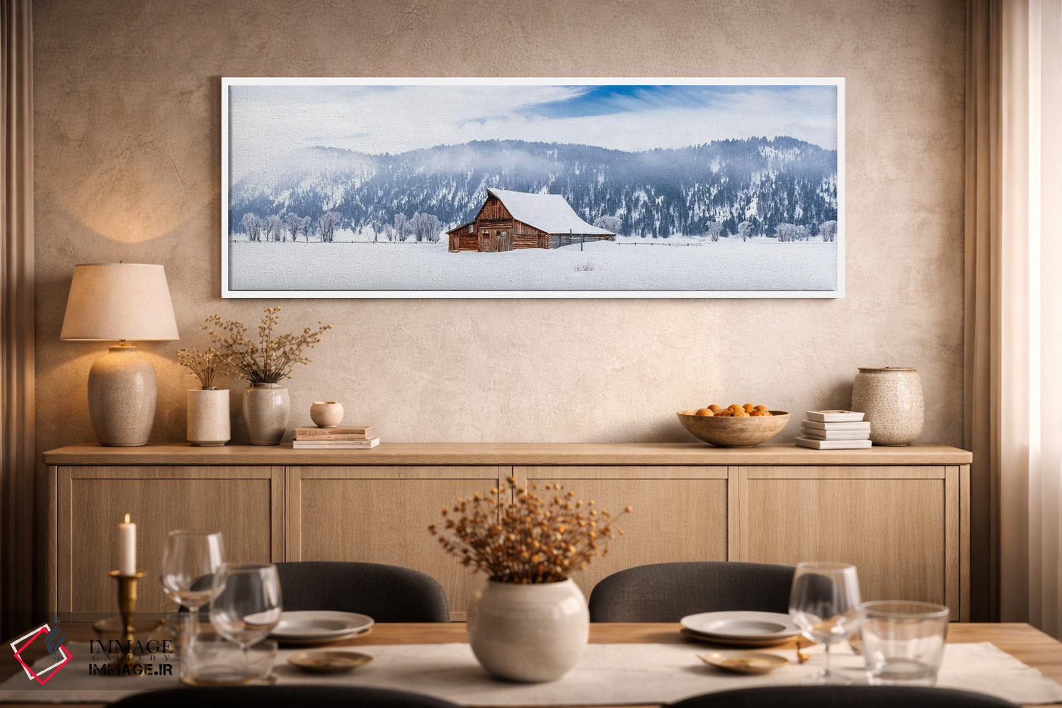 در نگاه اول، «انبار چوبی در برف» اثرِ «سوزانه کرمر» به دیوار، شخصیت و جهت میدهد؛ برای دکورهای کلاسیک با چوب و پارچه پیشنهاد میشود. اگر میخواهید مهمانها مکث کنند، این اثر دلیل خوبیست.