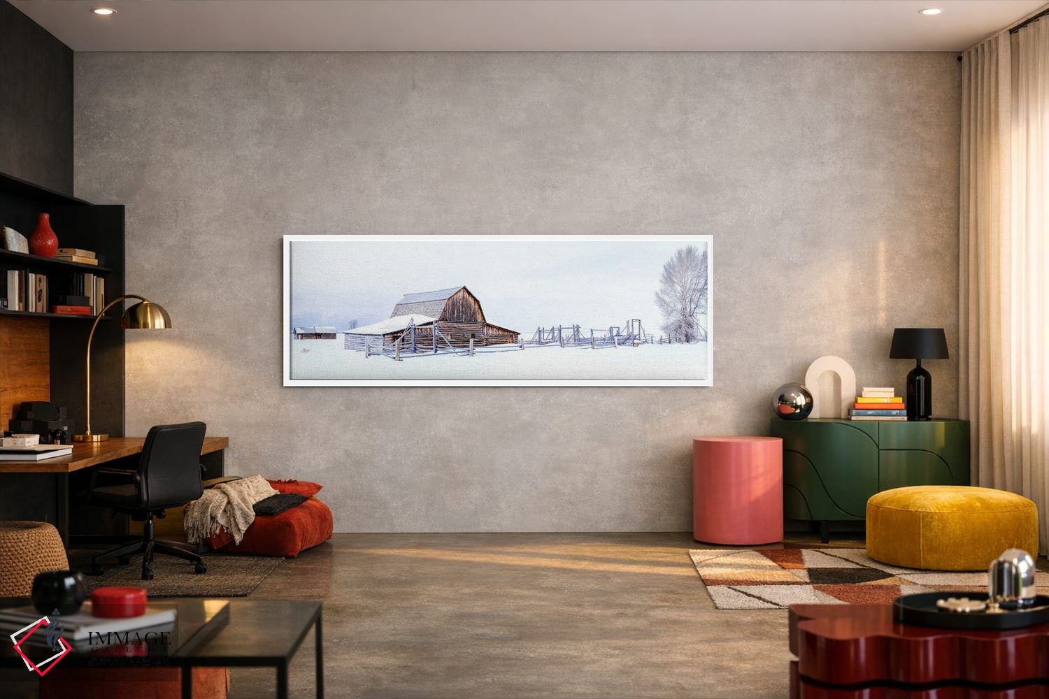 بوم گالری ایماژ نسخهی دکوراتیوِ سطحبالا از یک اثر هنری است. روی کنواس سفیدِ یکدست و بدون اسید با اجرای چاپ هنری جیکلی (Giclée) برای آرتپرینتهای جدی و جوهرهای آرشیوی Epson UltraChrome HDR برای بازنمایی بهتر تونهای حساس؛ روی دیوار، کار یکدستتر و خوشکیفیتتر دیده میشود.