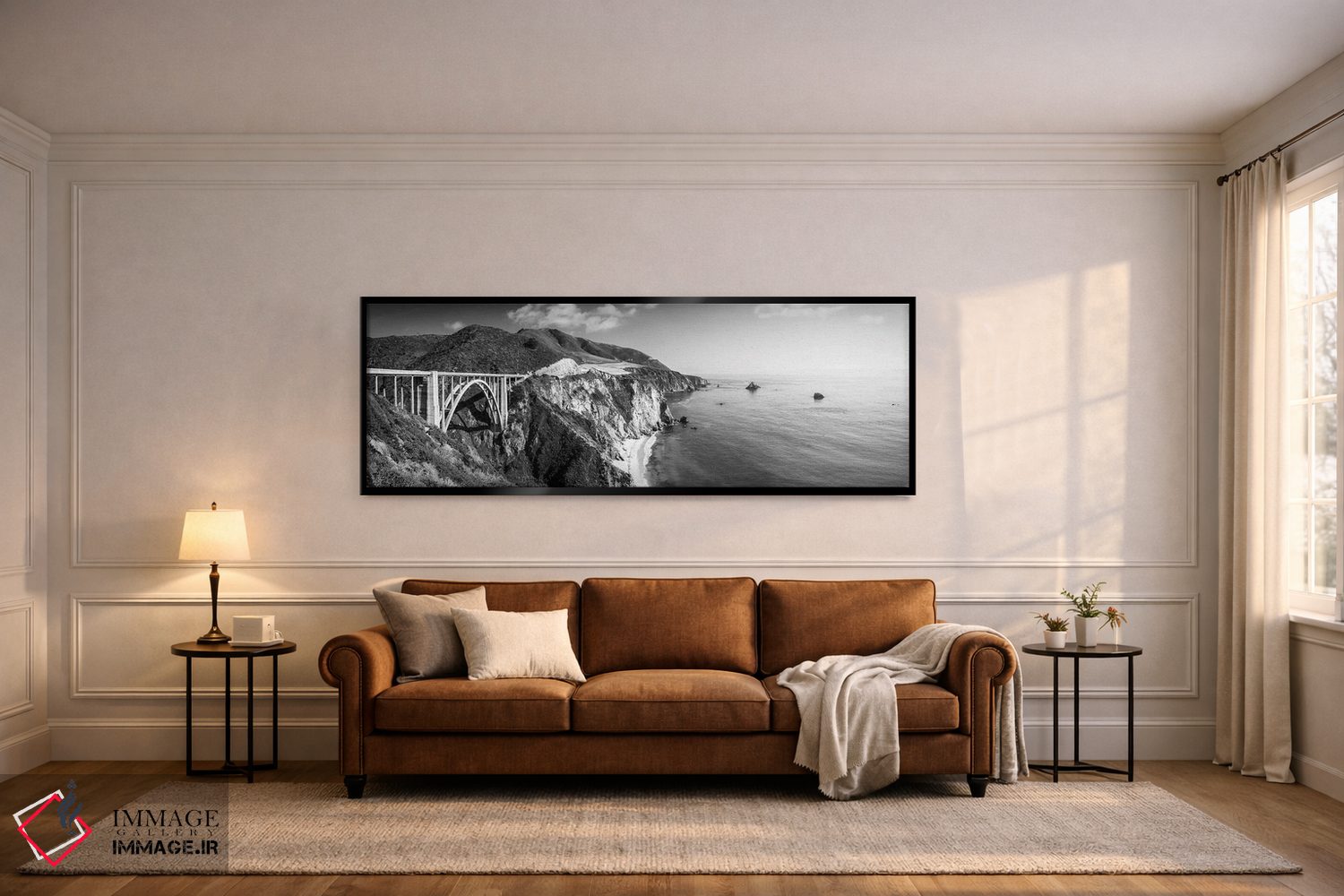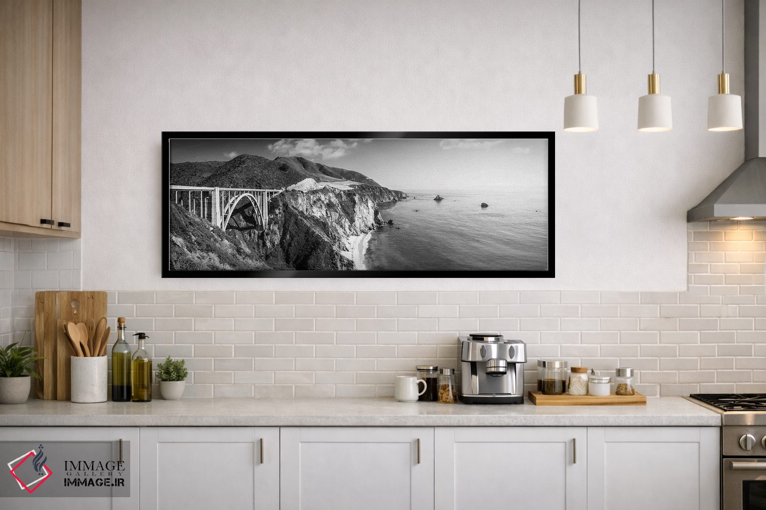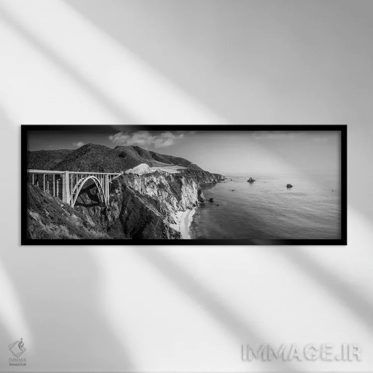 «پل بیکسبی تکرنگ (سیاه و سفید)» اثرِ «سوزانه کرمر» در فضای عکاسی سیاهوسفید، روی نور و کنتراست تکیه میکند؛ موضوعِ این اثر برای دکورهای مینیمال عالی است.